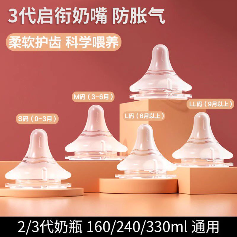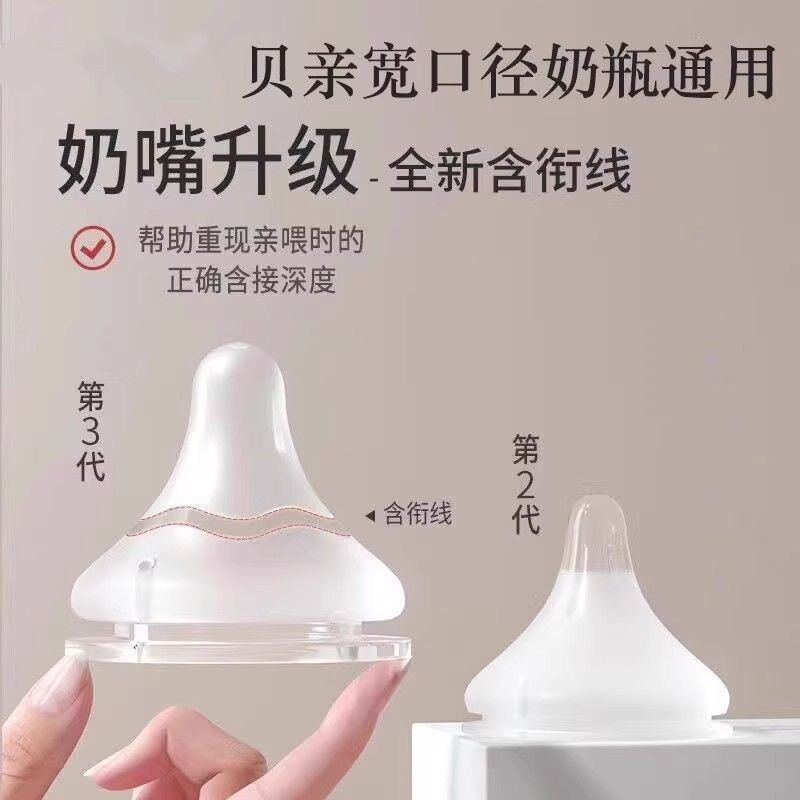 适配贝亲第3代宽m口径奶瓶硅胶奶嘴新生儿自然口感婴儿宝宝配件