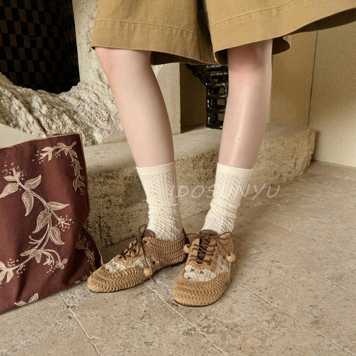 idosunyu女鞋子2026新款今年流行爆款夏季编织网面透气德训鞋女轻