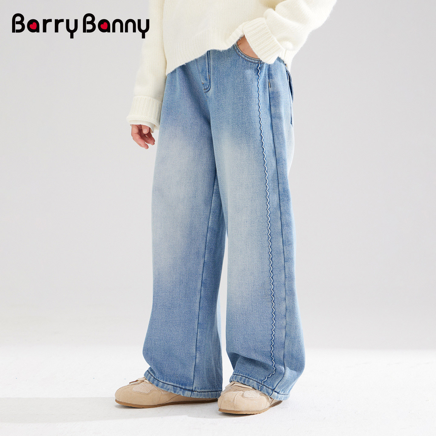 BarryBanny女童加绒弯刀牛仔裤2026春季新款儿童休闲宽松保暖裤子