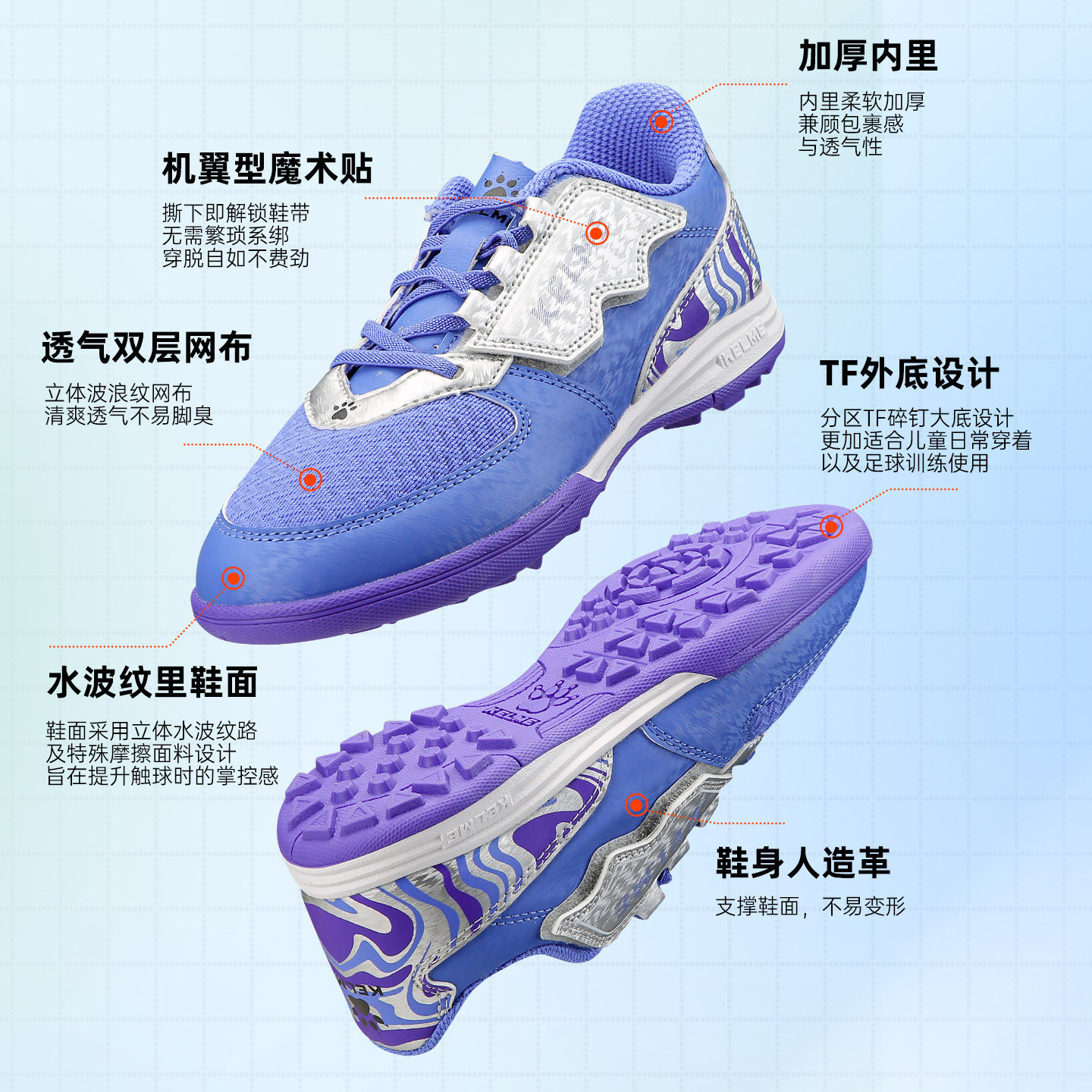 311线报网描述:网面透气,机翼免系带魔术贴,碎钉TF人造草