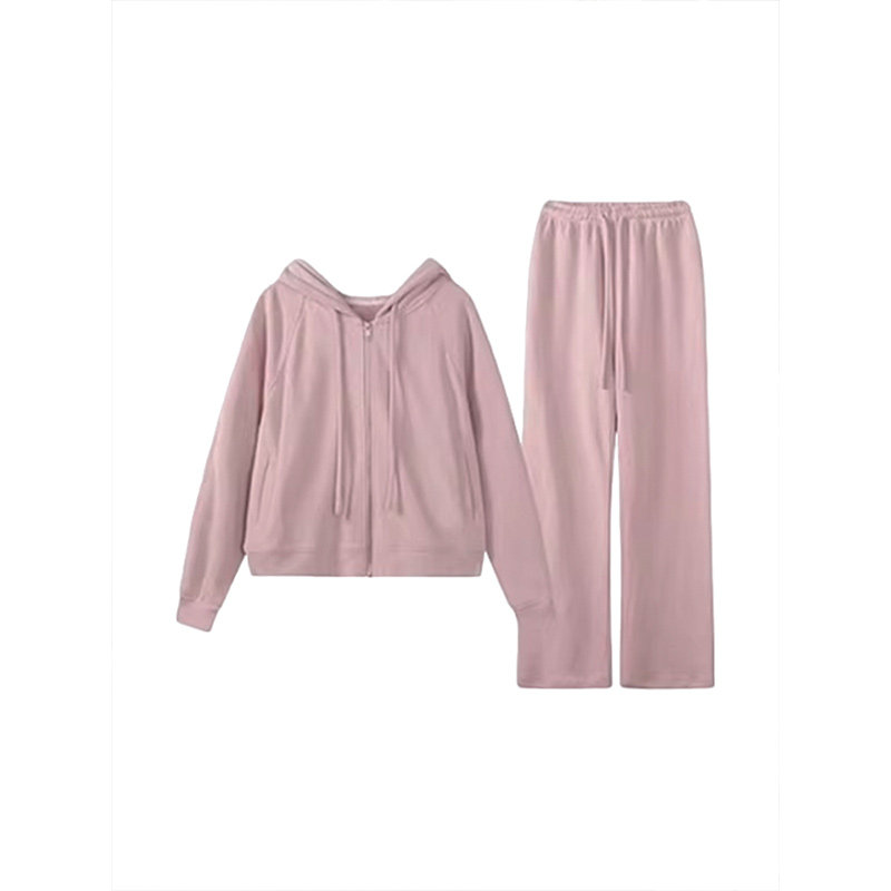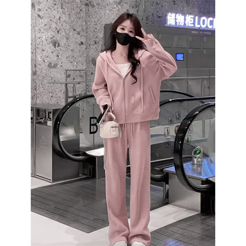 2026新款小个子奶系穿搭一整套女早春季粉色休闲运动卫衣两件套装