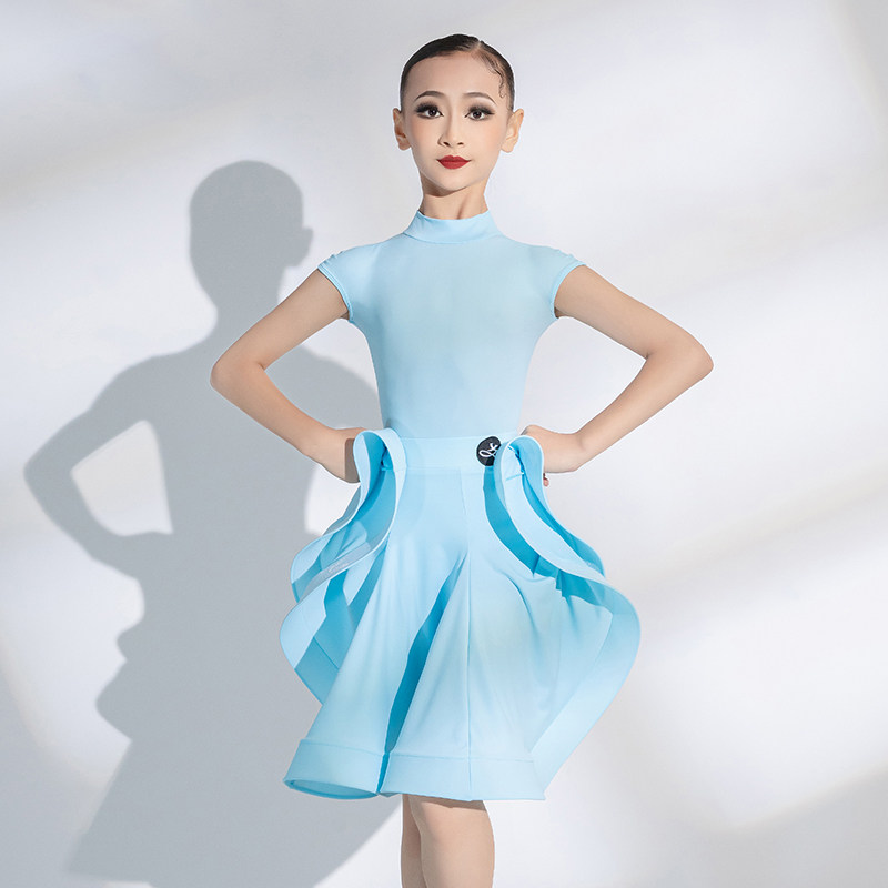 2025新款拉丁舞服女童短袖夏季专业比赛服儿童舞蹈服规定服练功服