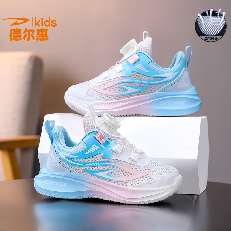 德尔惠童鞋女童鞋子夏季新款中大童透气薄款网面儿童运动鞋跑步鞋