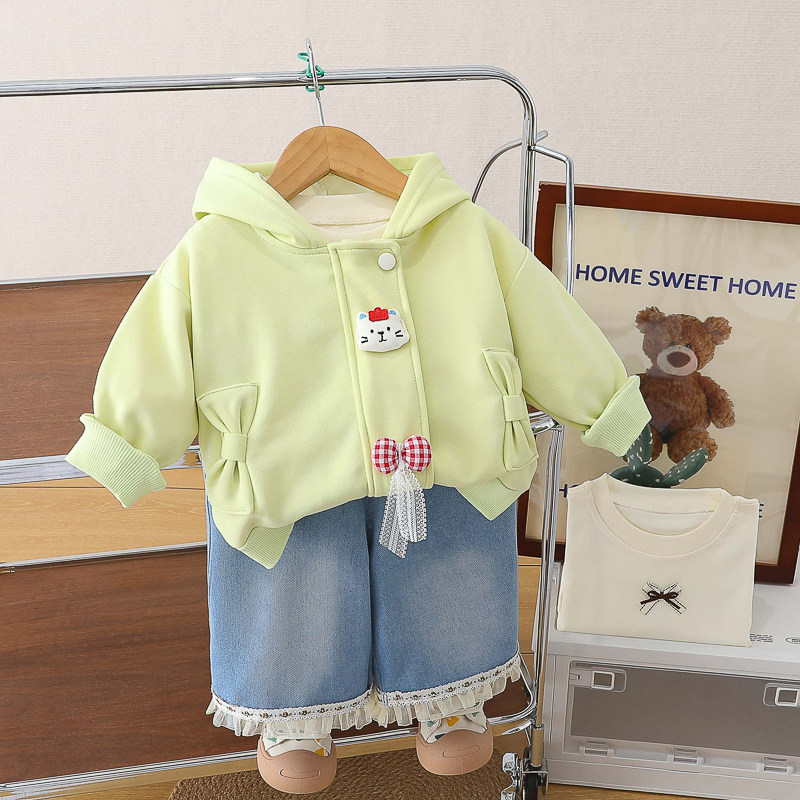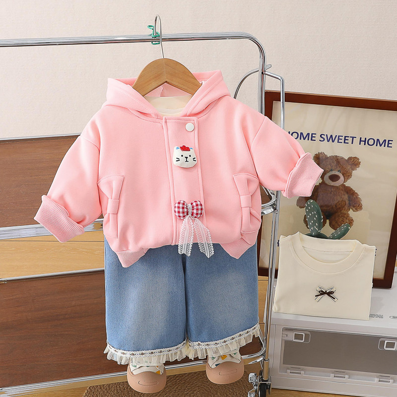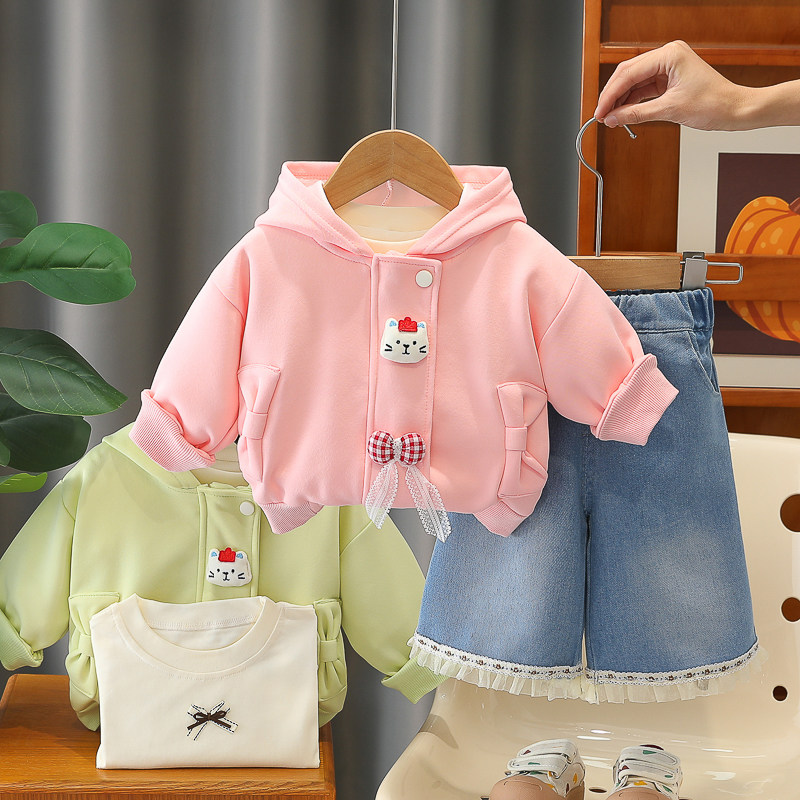 女童春装套装2026新款春秋连帽外套洋气时髦女宝宝卫衣裤子三件套