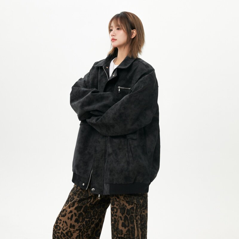 复古PU皮衣外套女春季新款胖mm大码宽松显瘦百搭学生翻领夹克上衣