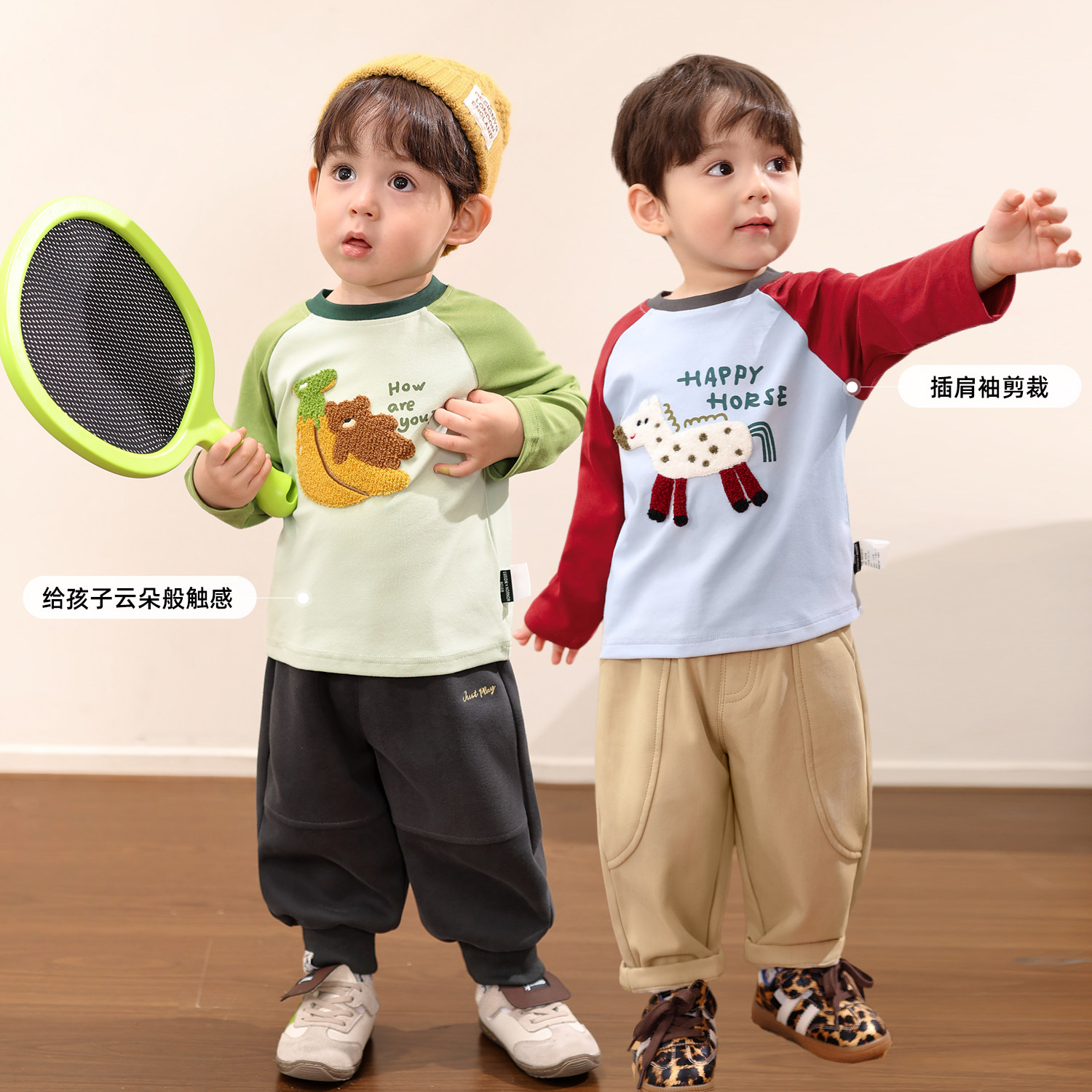 小O爸男婴童 男宝宝长袖t恤春秋2026新款大图案婴儿可爱上衣