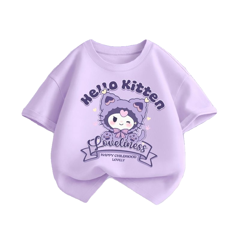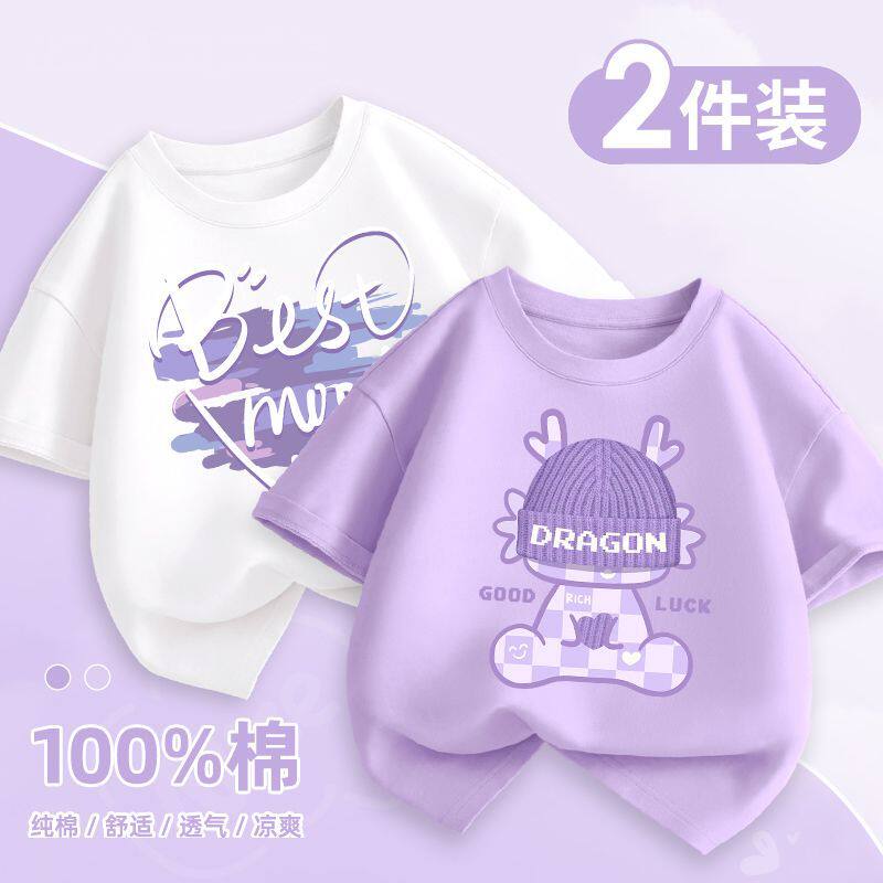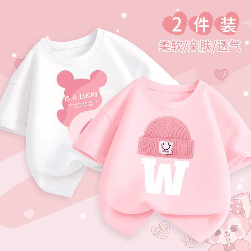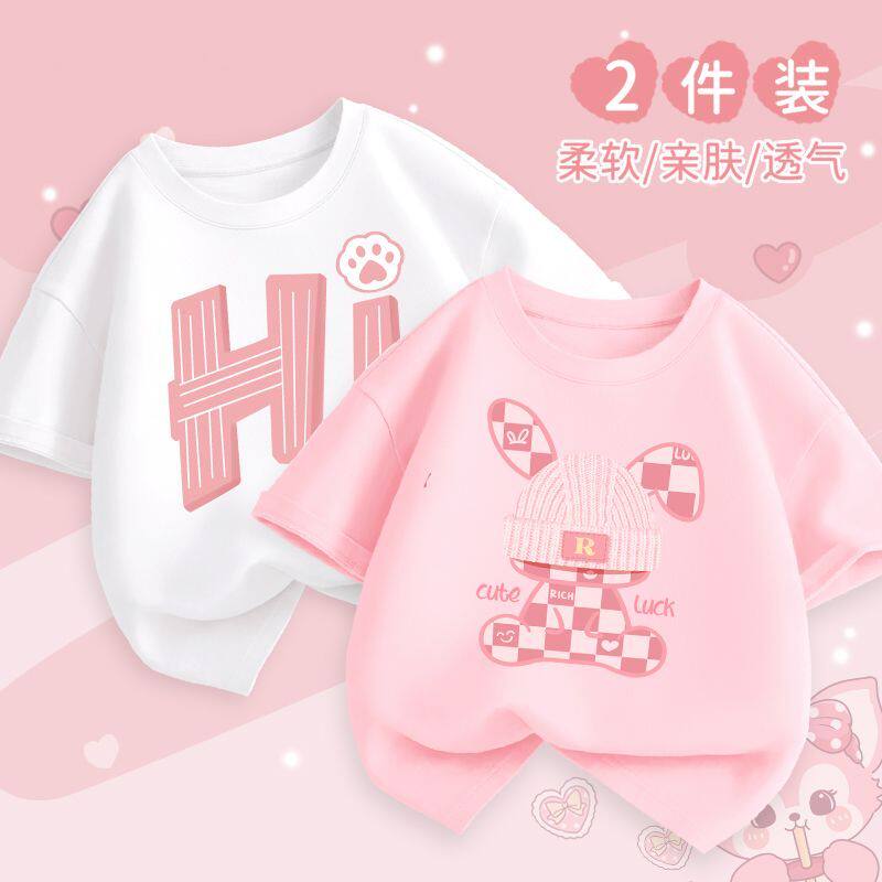 女童短袖t恤夏季纯棉上衣洋气时髦半袖夏天白色体恤儿童卡通夏装