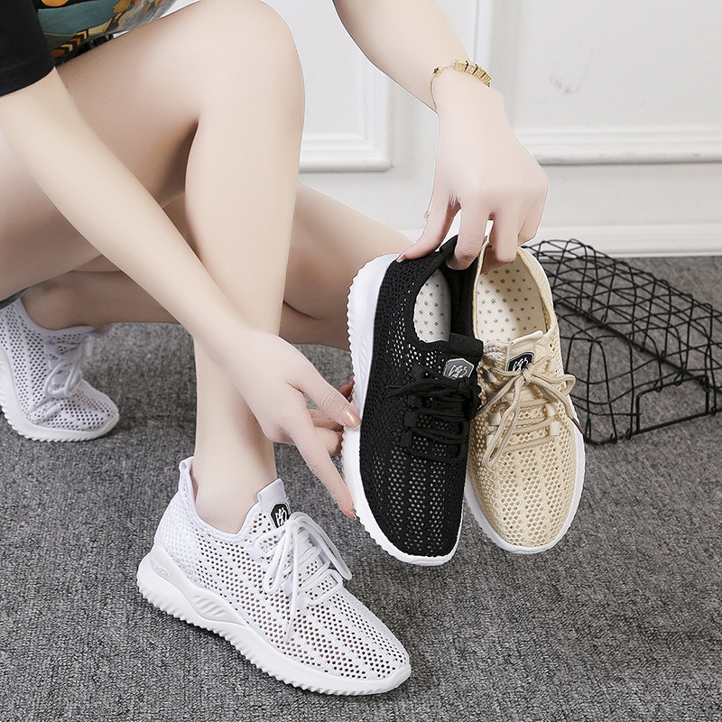 宽胖脚运动鞋女大码41-43夏季薄款透气网鞋女软底网眼网面小白鞋