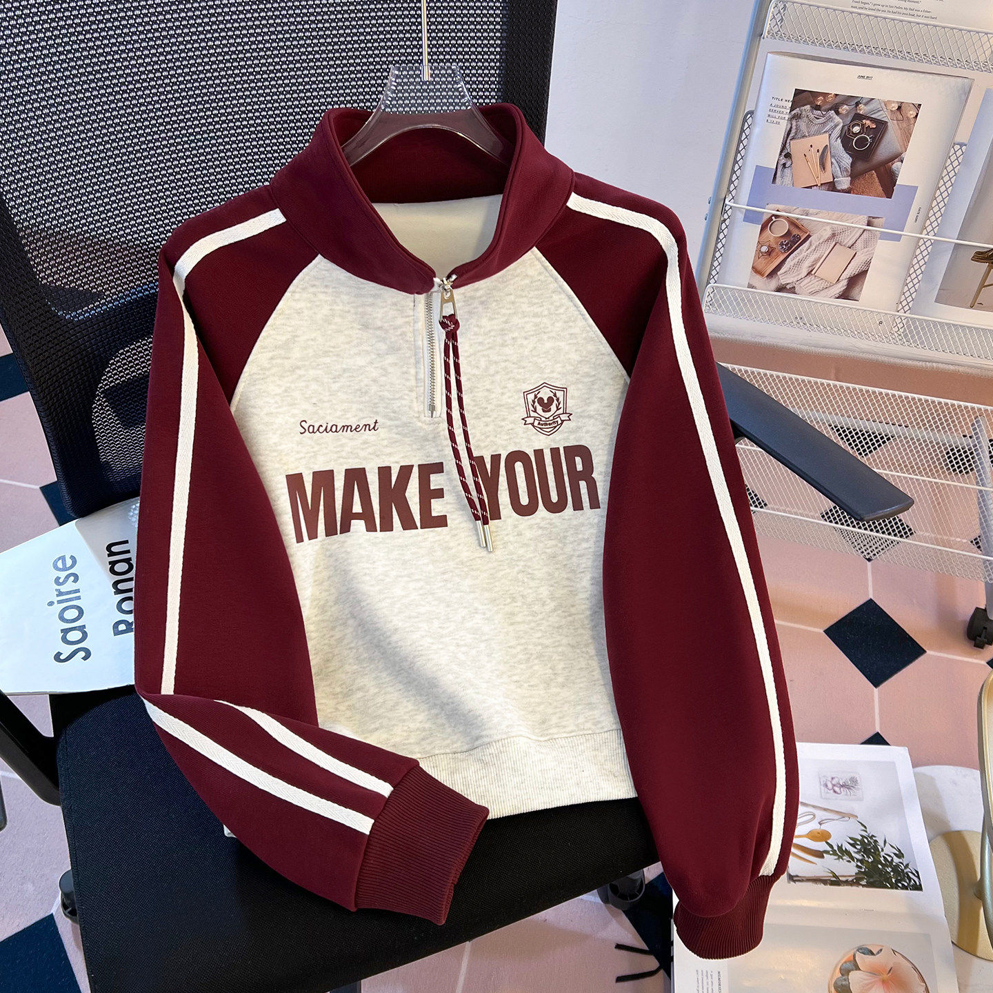 女童独特漂亮纯棉卫衣2026春装新款中大童超好看三条杠春秋季上衣