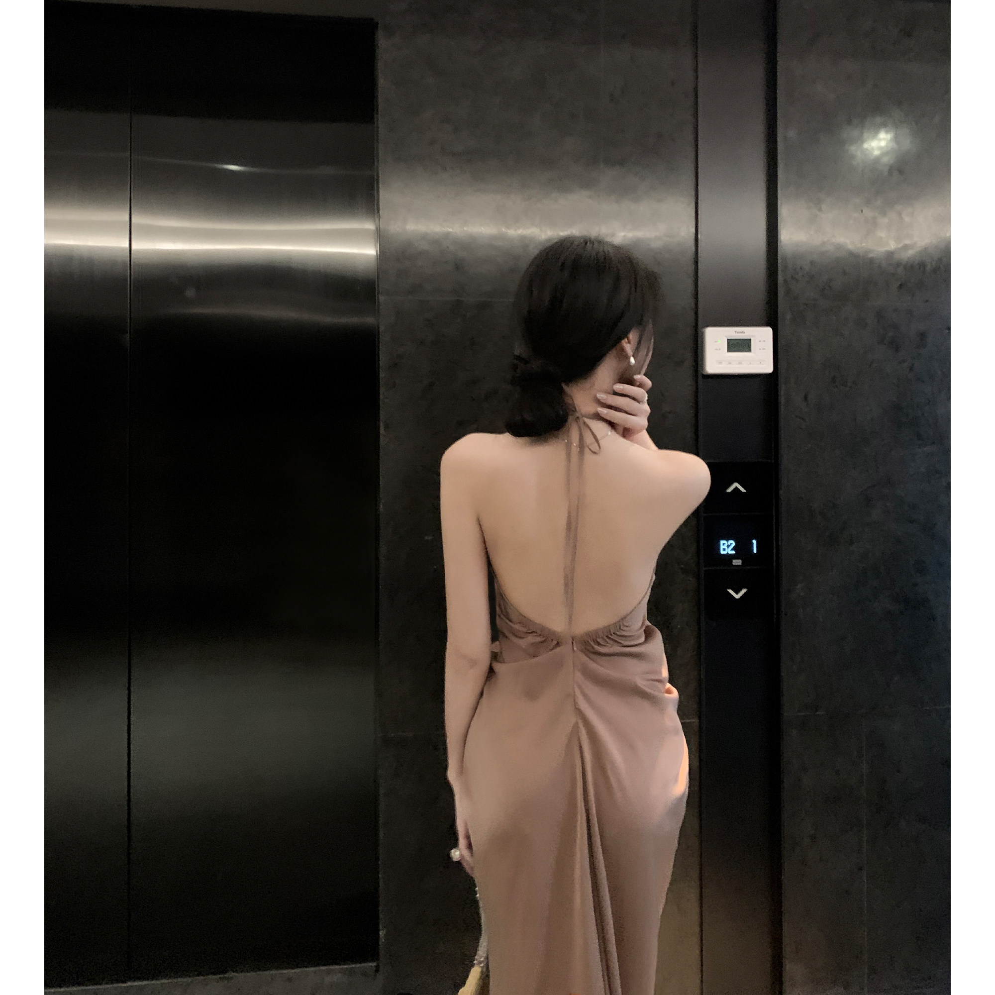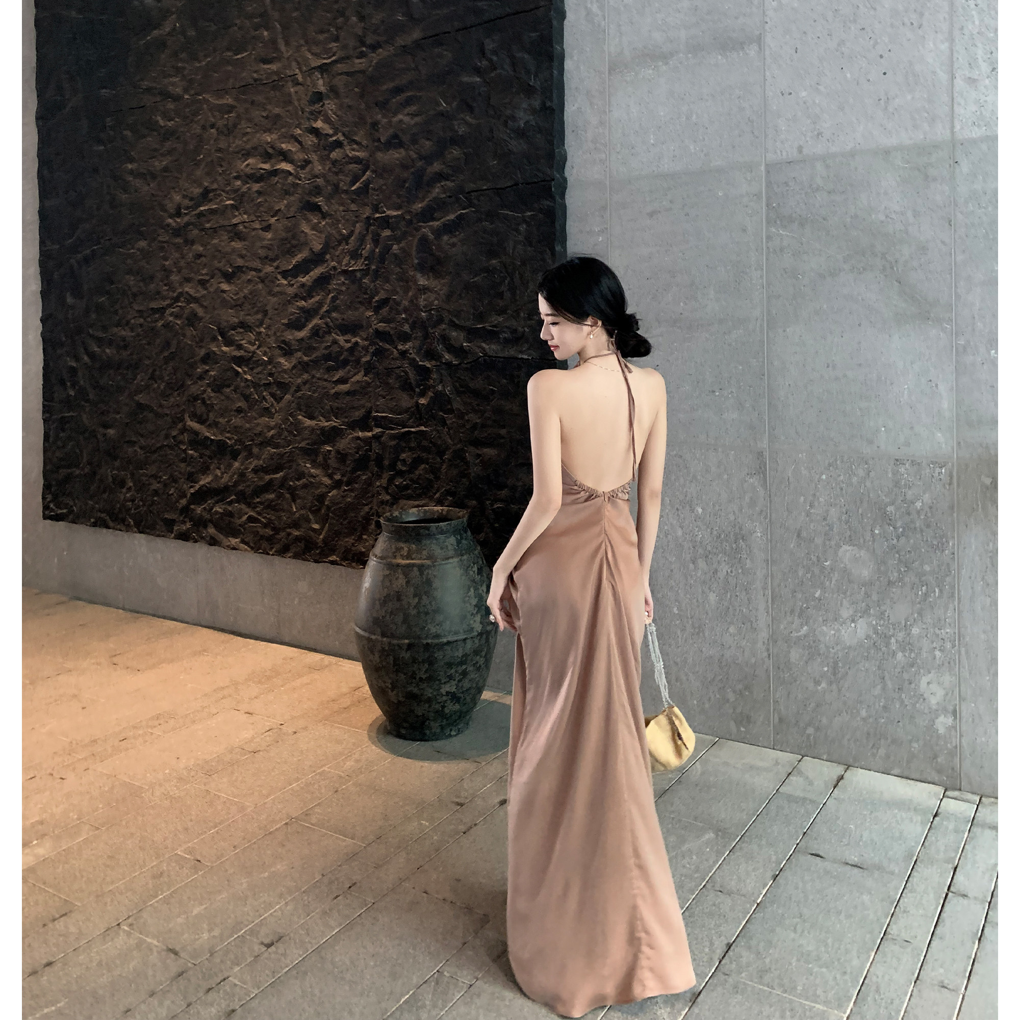 Middletone | 洛神裙 哑光缎面挂脖露背性感连衣裙女度假长裙子