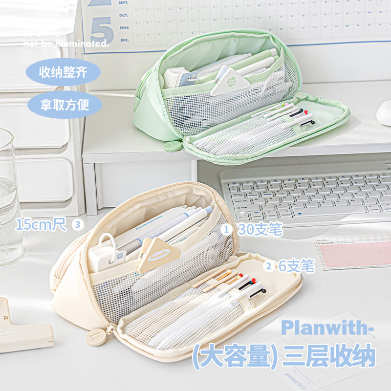Planwith笔袋高颜值ins风女生2026年新款初中生男生大容量痛包小众不撞款简约文具盒学霸铅笔袋收纳