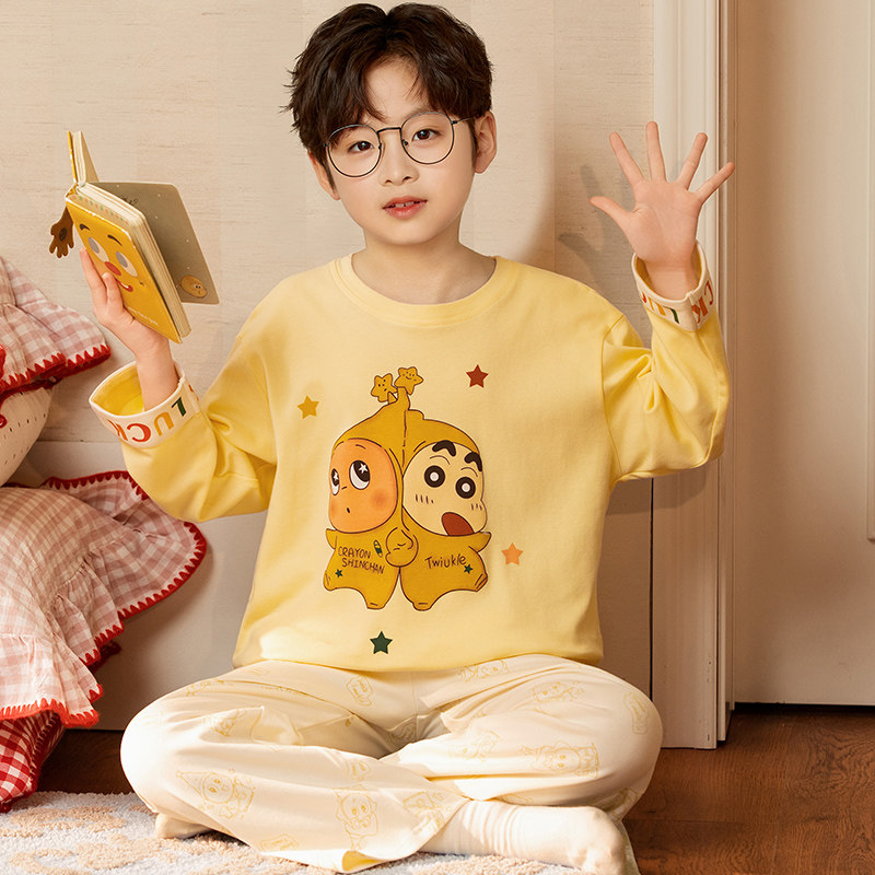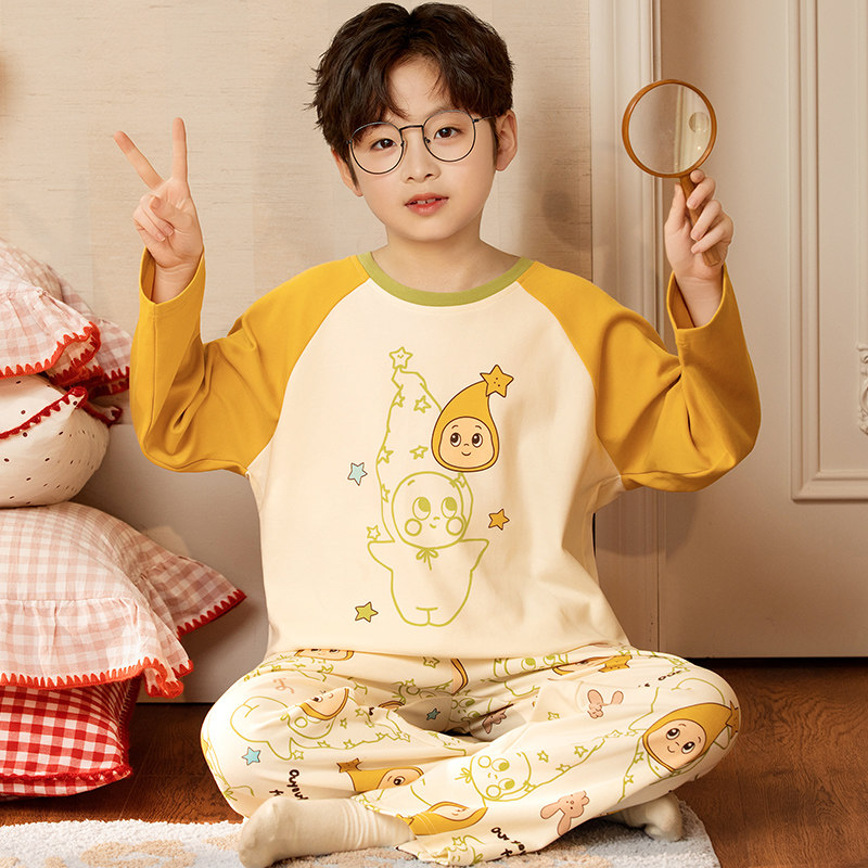 男童睡衣春季青少年全棉初中生家居服儿童纯棉春秋款长袖男孩套装