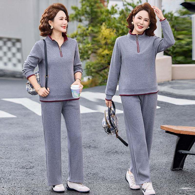 商场品牌中老年女春季立领运动套装妈妈春秋洋气今年流行的卫衣减