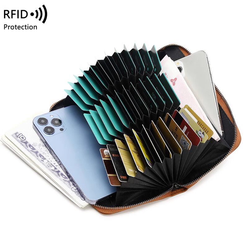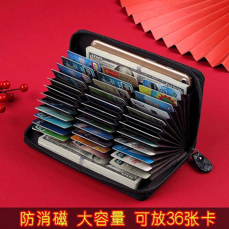 真皮质感男士卡包防盗刷女款钱包长款大容量证件银行卡套防磁卡夹