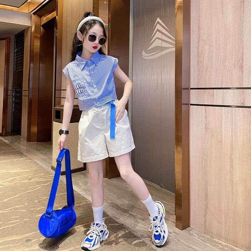 女童夏季学院风套装新款韩版中大童女孩洋气时髦运动休闲两件套潮