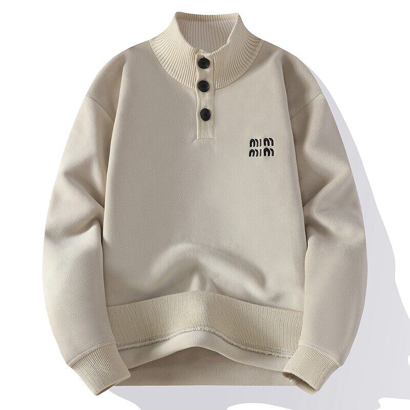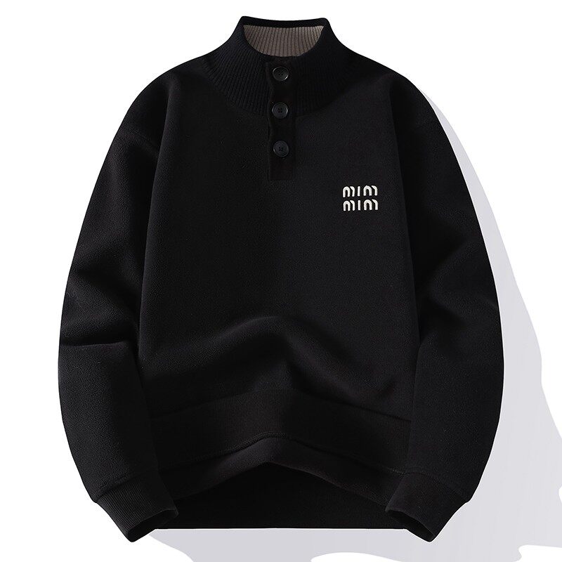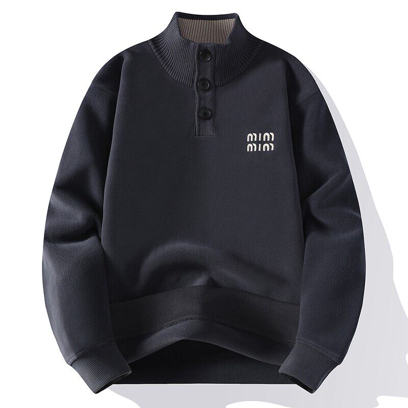 半高领卫衣男款秋冬季加绒加厚打底衫上衣男士三粒扣奥粒绒内衣服