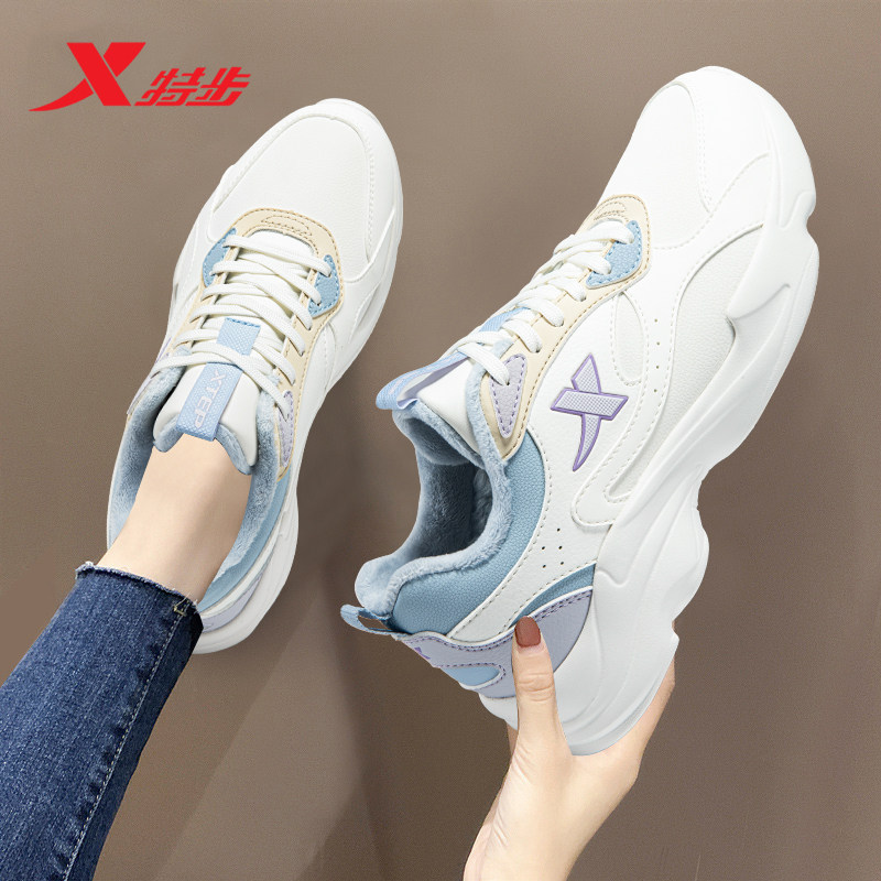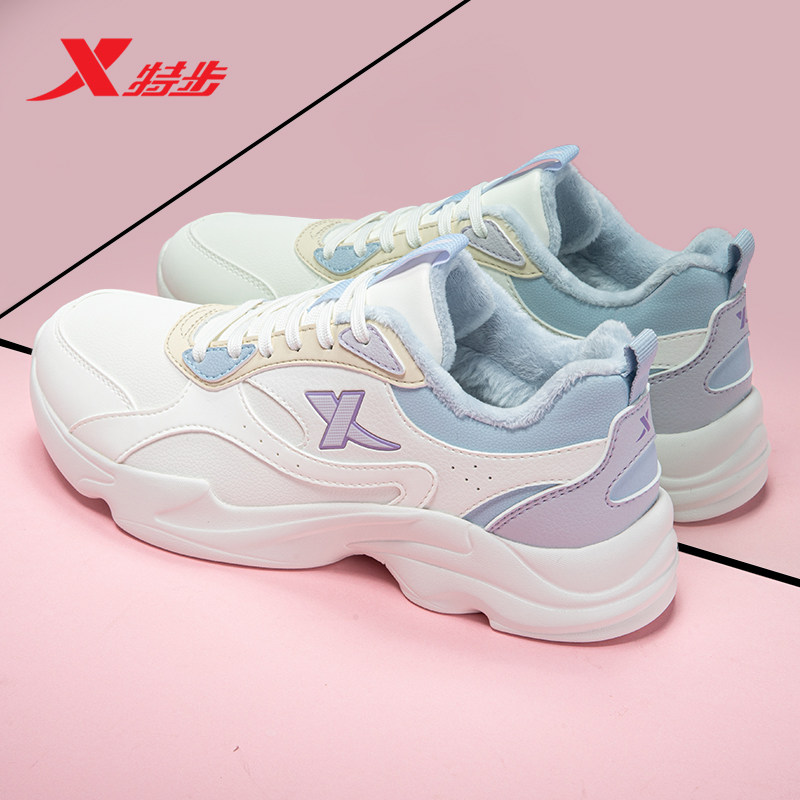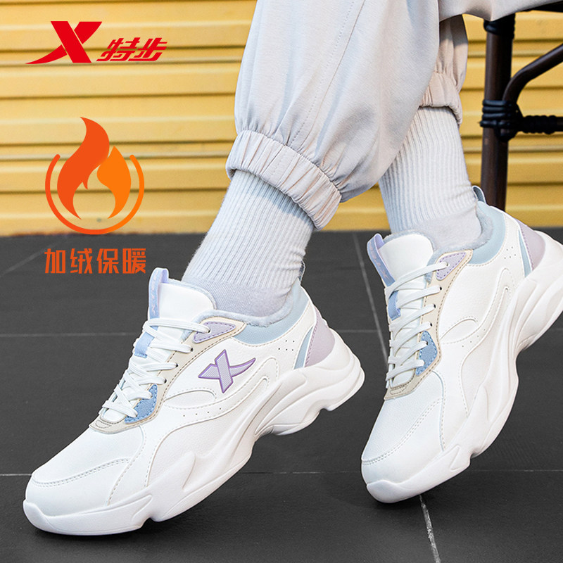 特步女鞋加绒保暖二棉鞋跑步鞋夏季女子休闲鞋官方旗舰店运动鞋女