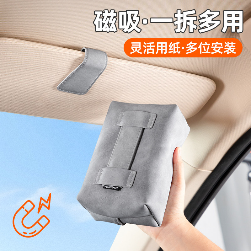 车载纸巾盒遮阳板磁吸挂式抽纸盒创意汽车顶天窗简约高级感纸巾盒
