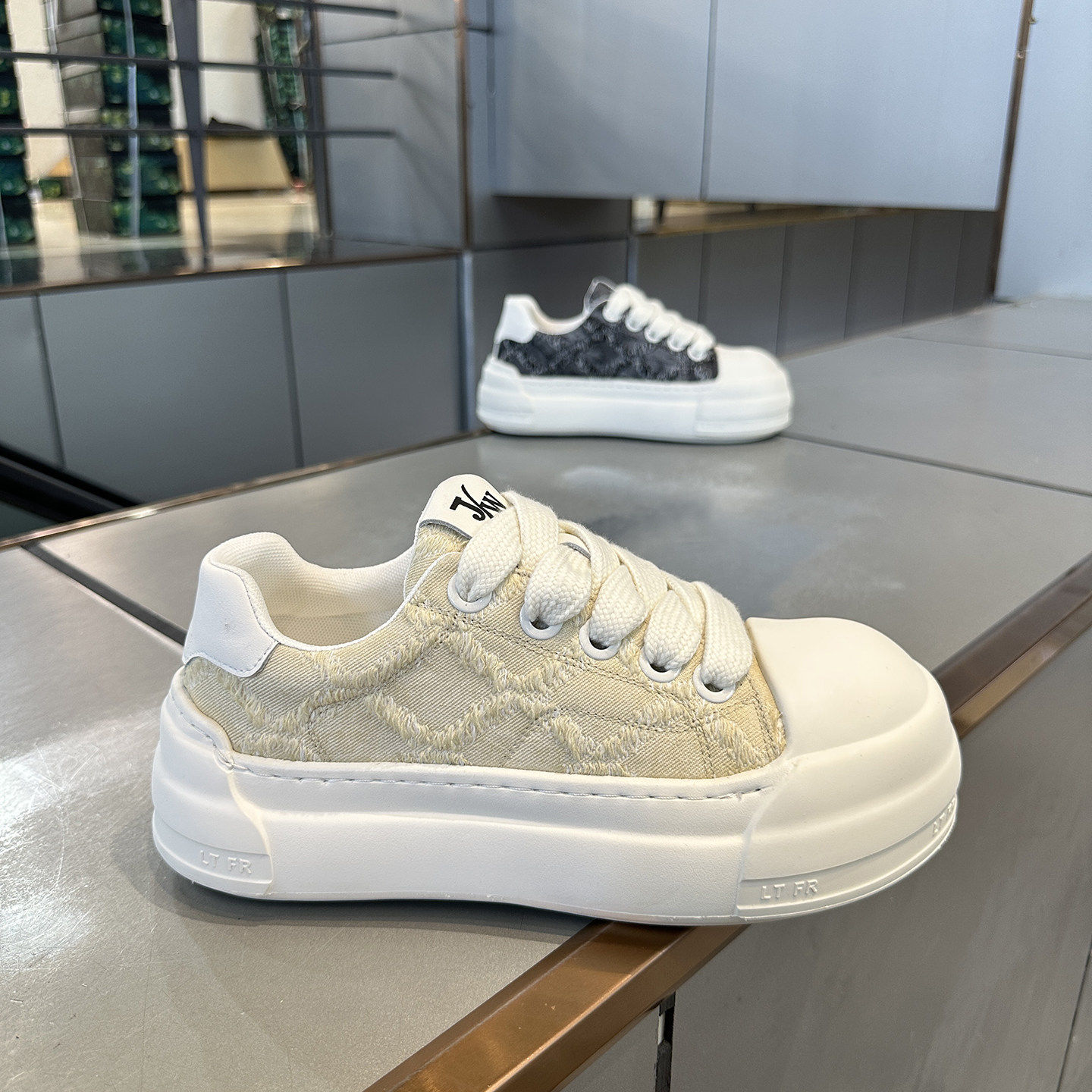 2026春款休闲厚底板鞋男透气百搭增高时尚潮流男鞋白色圆头潮鞋