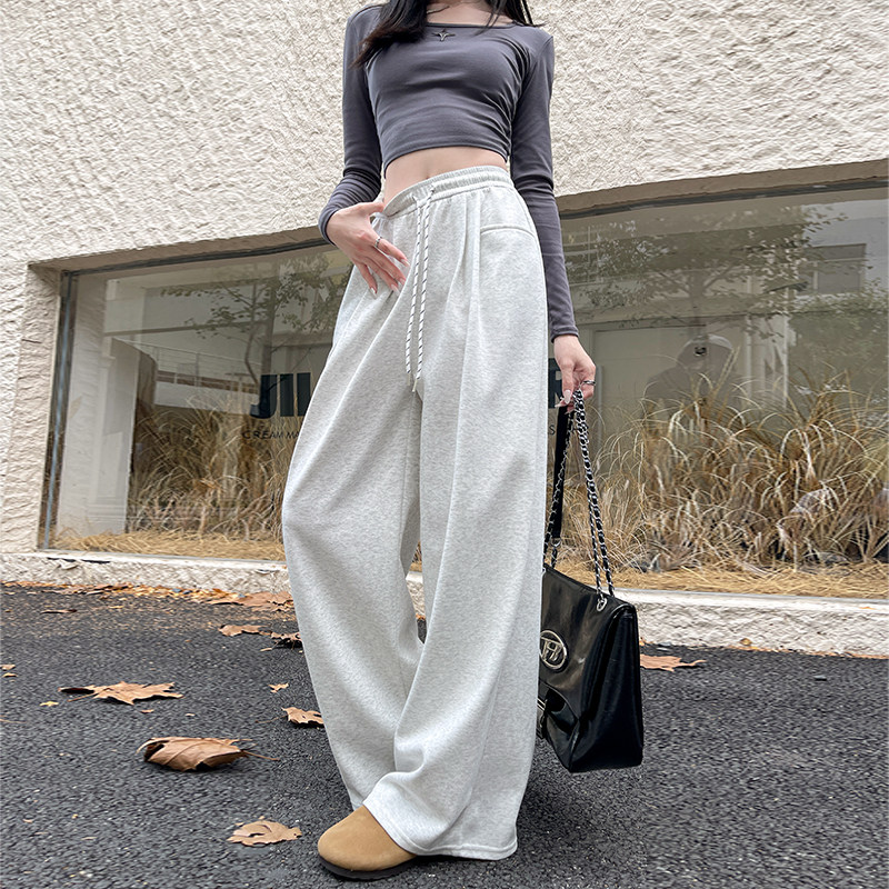 运动裤女款2026新款红色直筒阔腿裤休闲宽松慵懒松弛感卫裤子