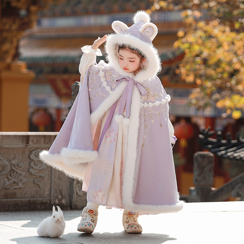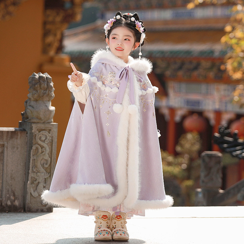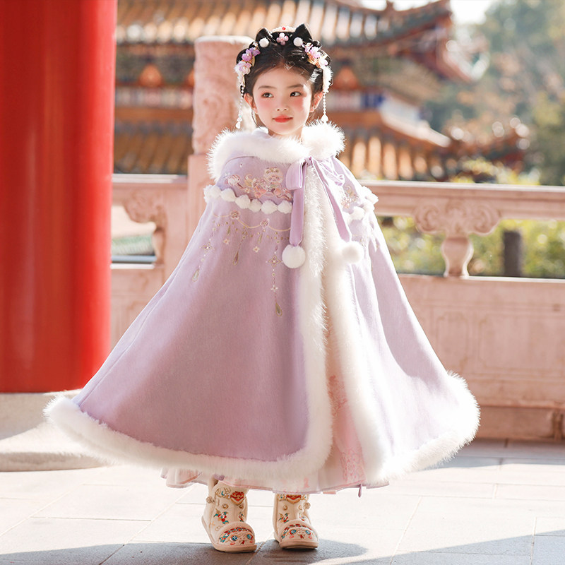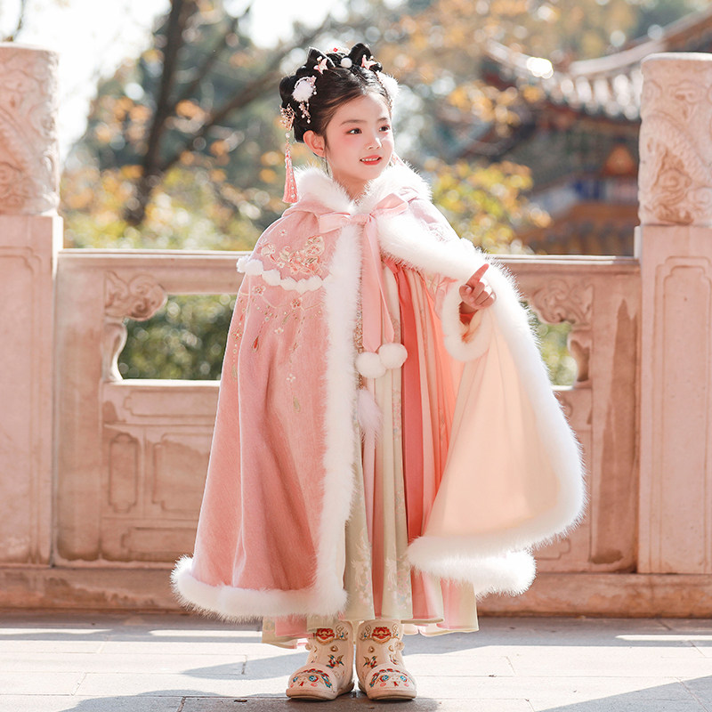 汉服女童冬款儿童国风仙气加绒加厚中长款大斗篷女孩保暖披风外套
