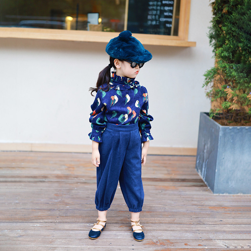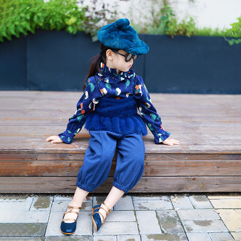 特价清仓女童儿童宝宝蓝色小鸟上衣绒绒毛衣马甲针织背心衬衣潮