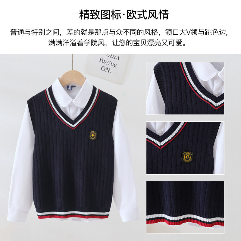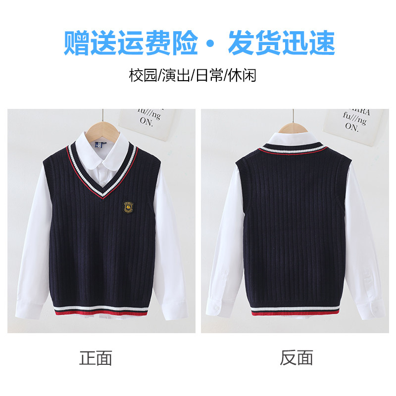女童马甲秋冬装2025新款毛衣藏蓝色儿童毛线背心男童薄款针织坎肩