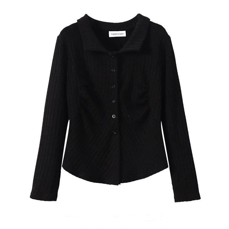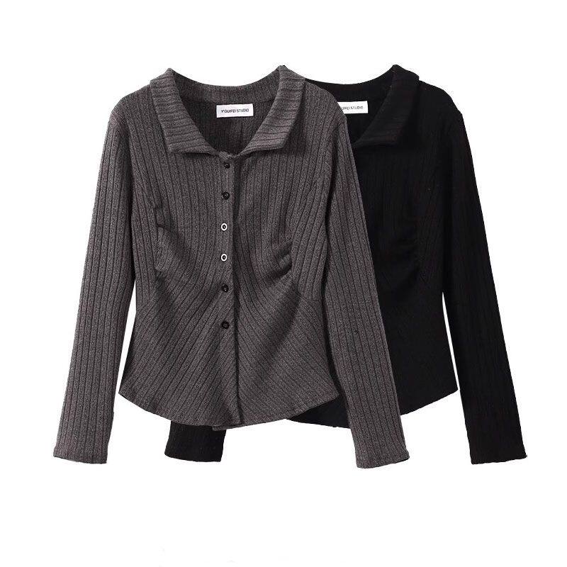 大码别致设计感小众polo领气质衬衫秋冬新款女修身显瘦长袖上衣