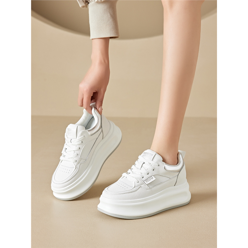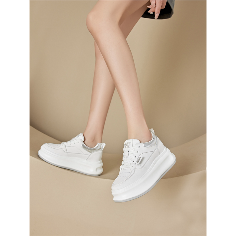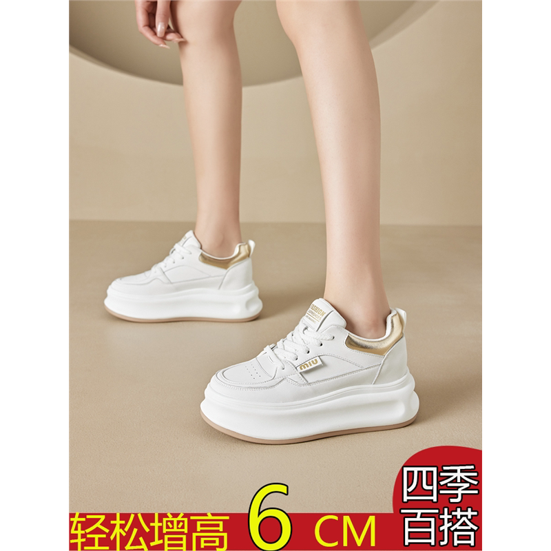 小白鞋女2025春夏新款爆款春季休闲内增高厚底鞋子真皮配裙子女鞋
