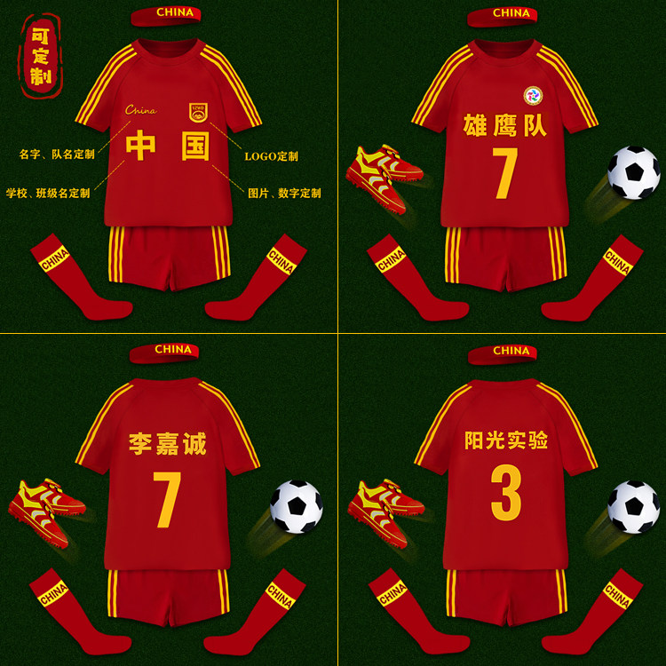 儿童足球服套装男孩小学生定制比赛训练队服中国队中大童速干球衣
