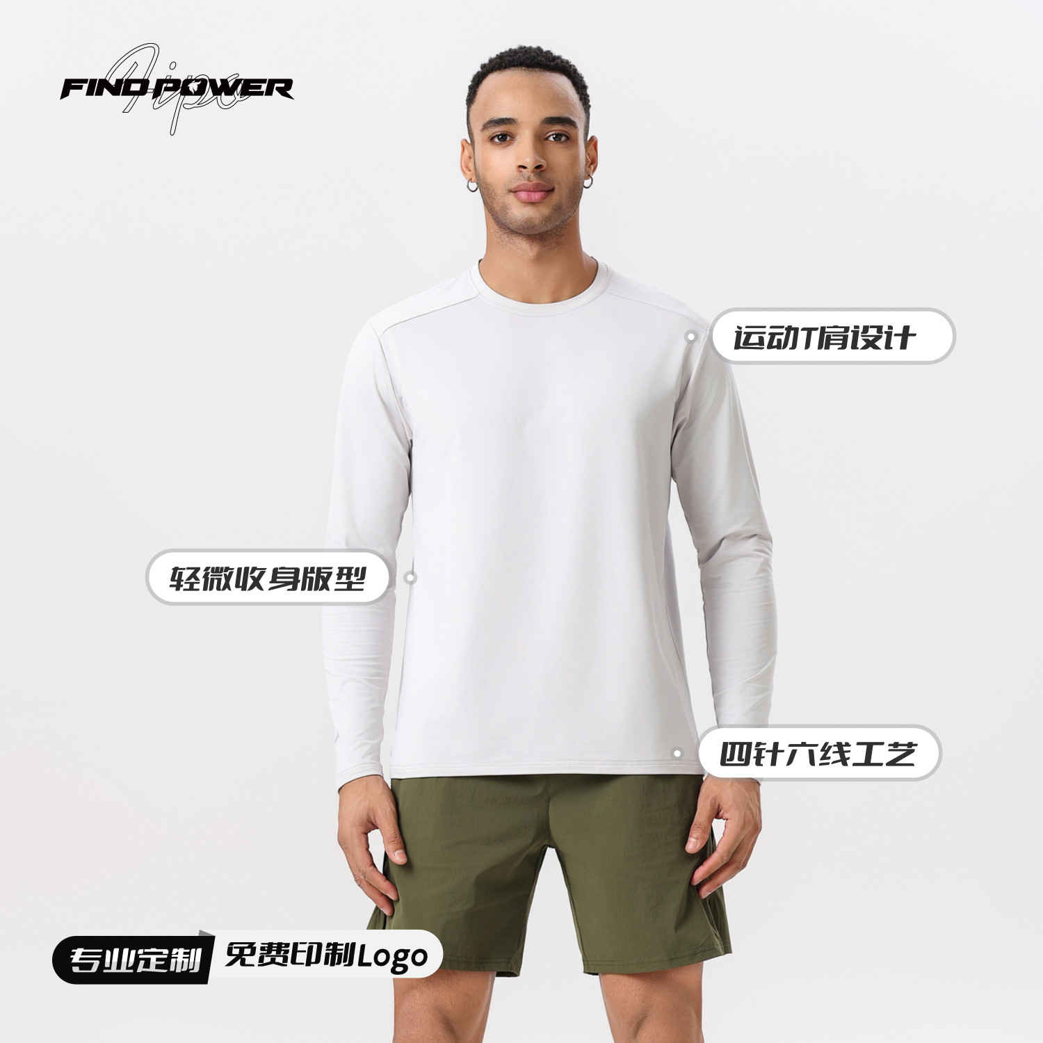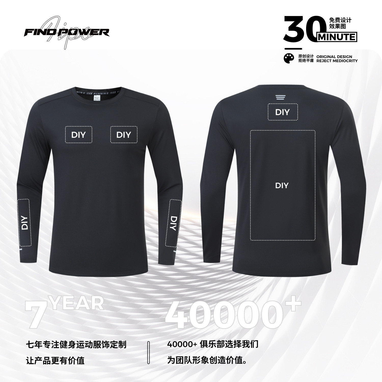 速干长袖T恤定制印logo圆领上衣紧身衣健身运动工装订教练工作服