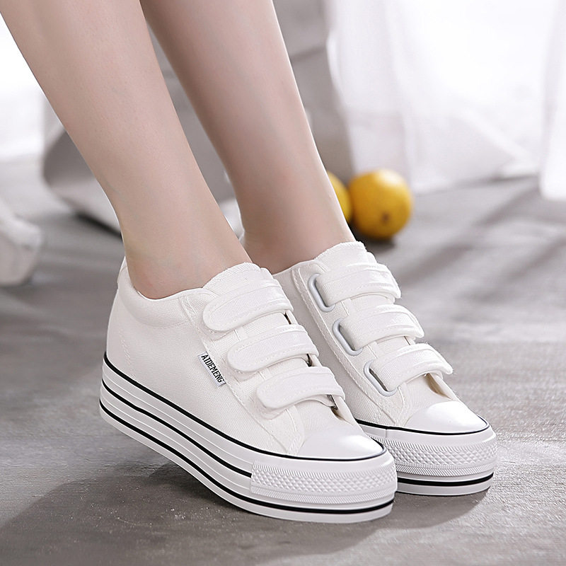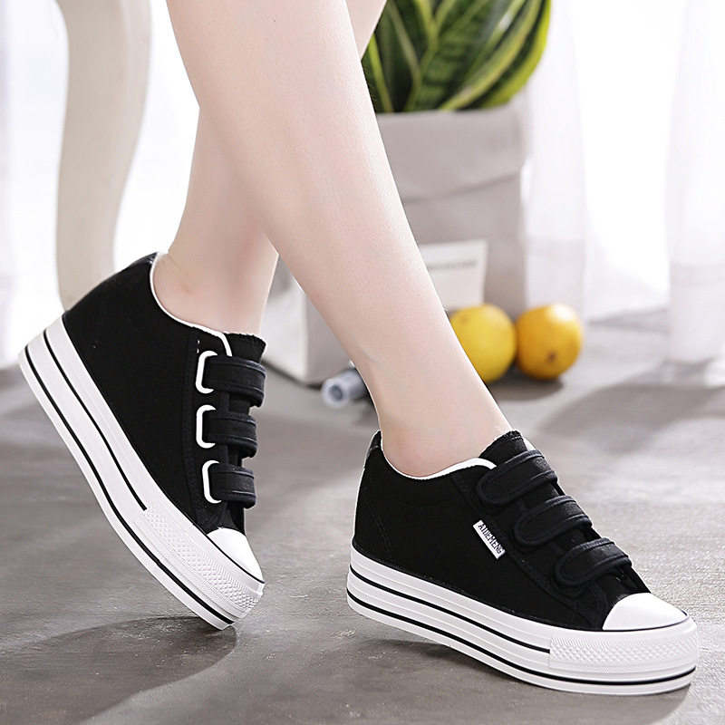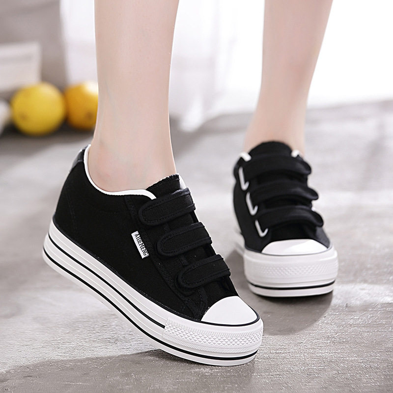 厚底内帆布鞋女鞋魔术贴百搭学生黑色小白鞋子
