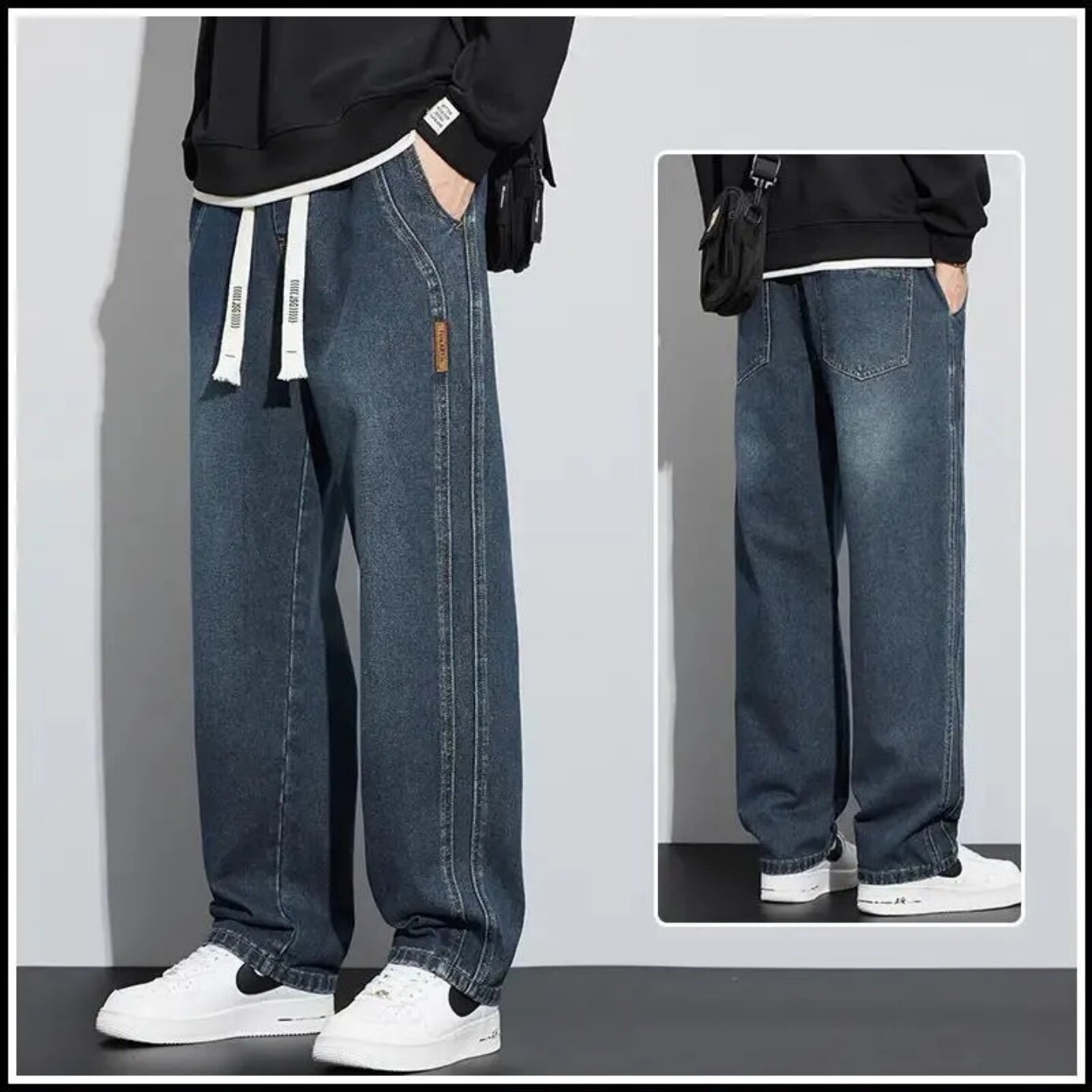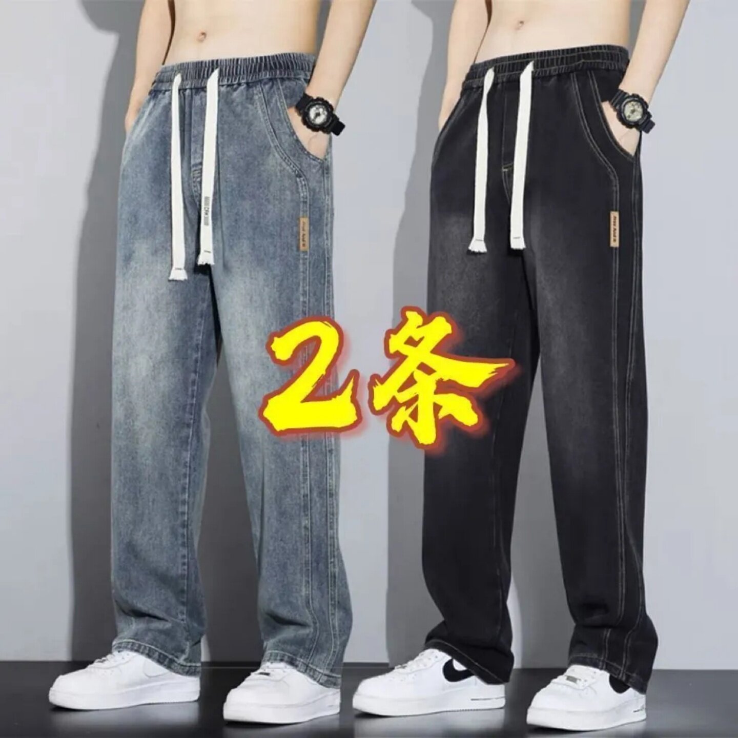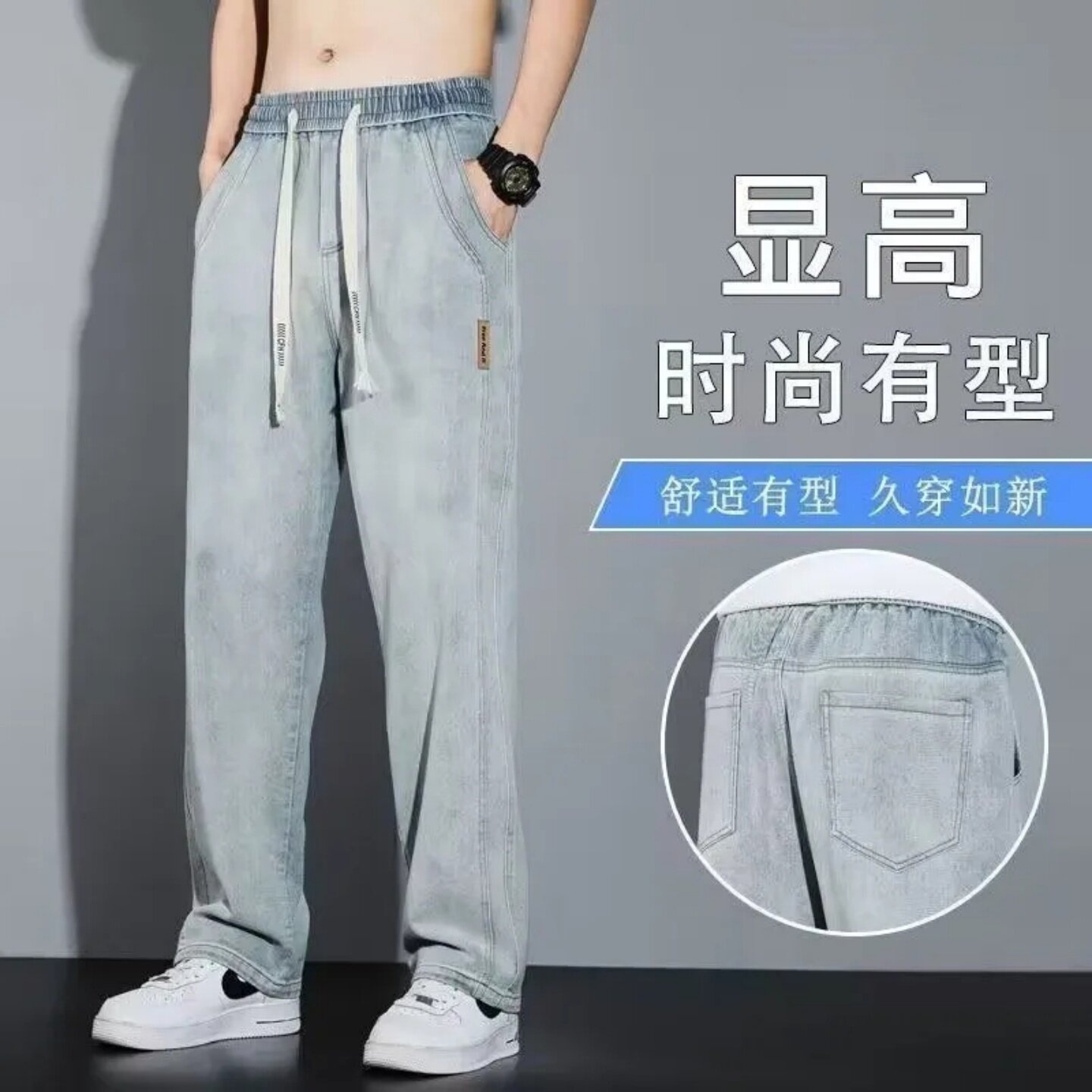 阔腿牛仔裤男夏季薄款松紧腰宽松直筒美式复古青年休闲长裤子男款