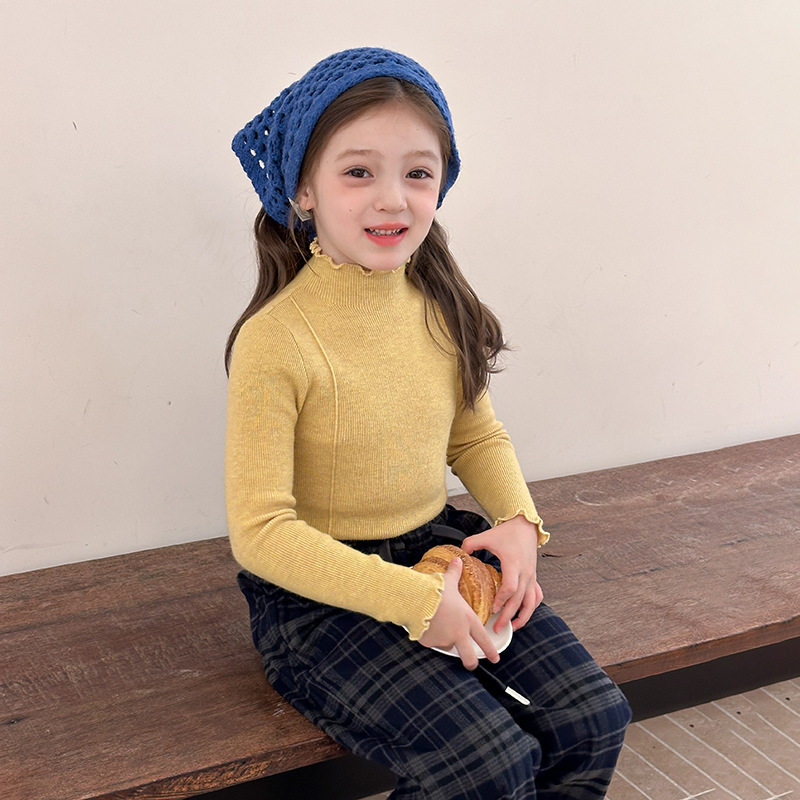 女童毛衣打底衫秋冬新款儿童木耳边半高领内搭甜美女孩薄款针织衫