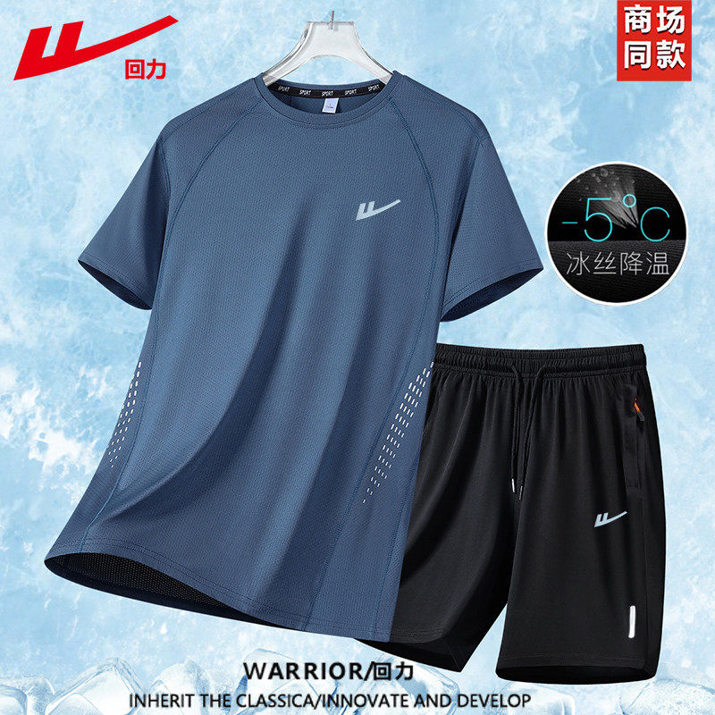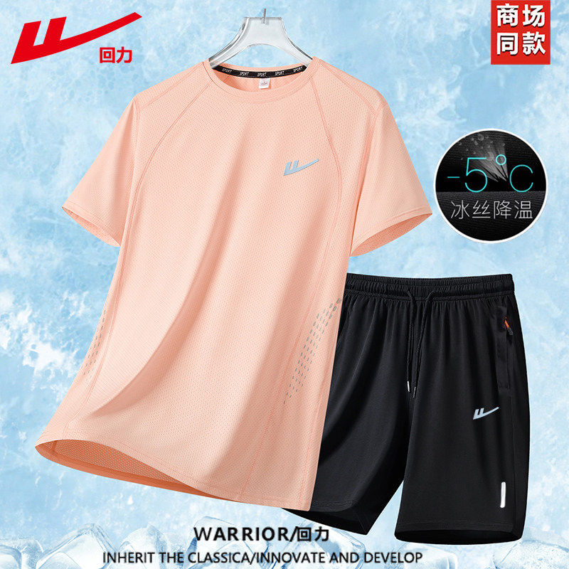 回力冰丝运动套装夏季薄款速干短袖t恤透气休闲跑步男女同款团购