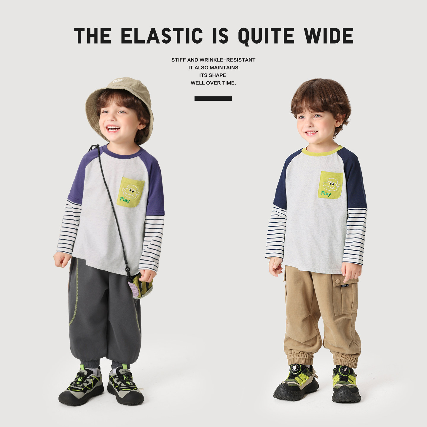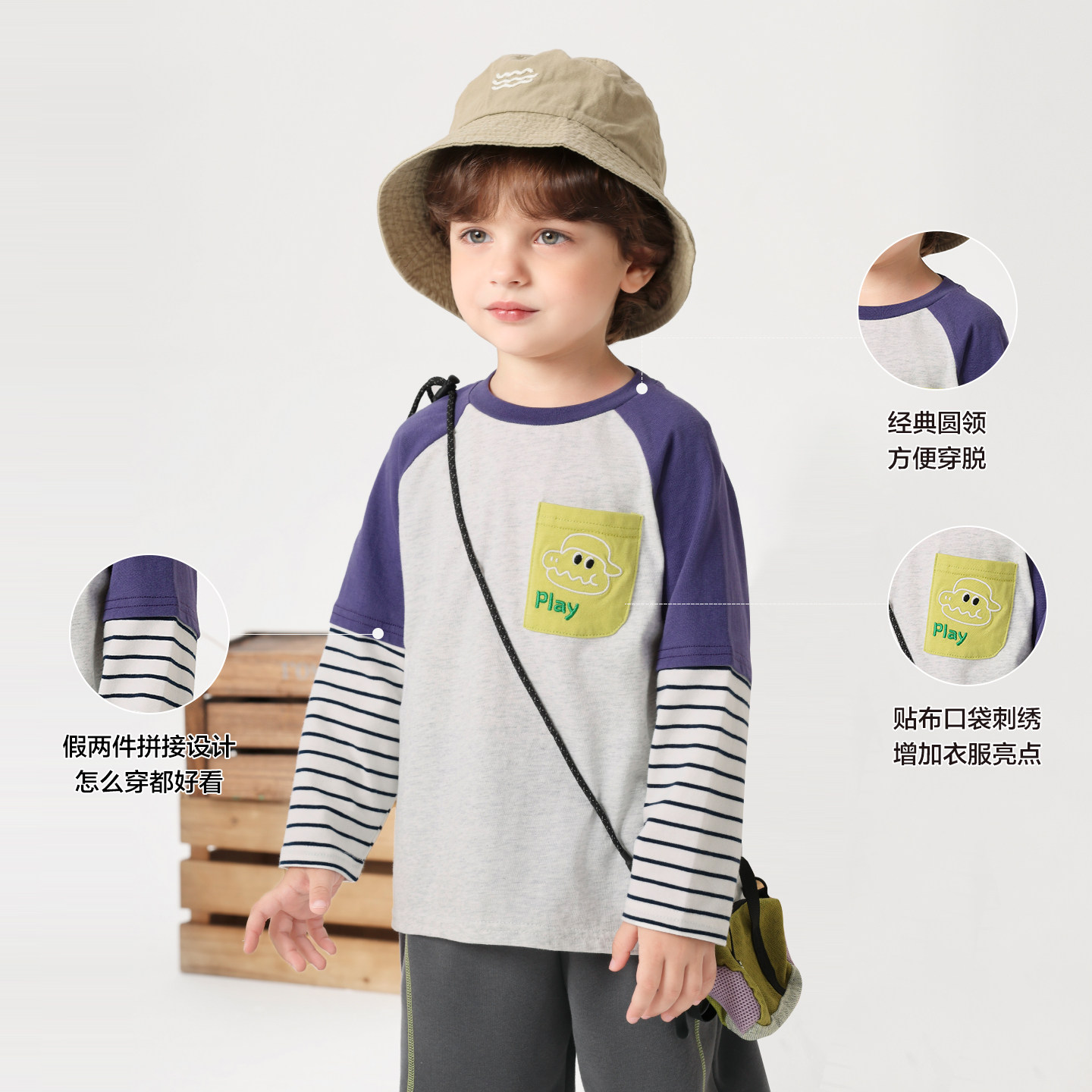 右欧男童女童打底衫长袖T恤假两件上衣春秋新款童装儿童基础内搭