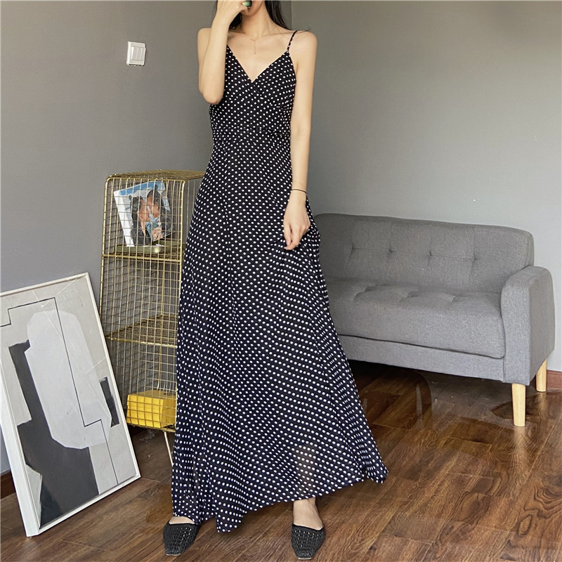 读衣术高个子连衣裙 超长款到脚踝内搭裙子 波点雪纺长袖v领长裙