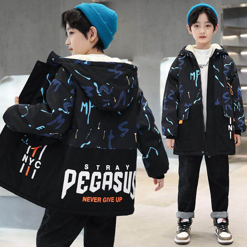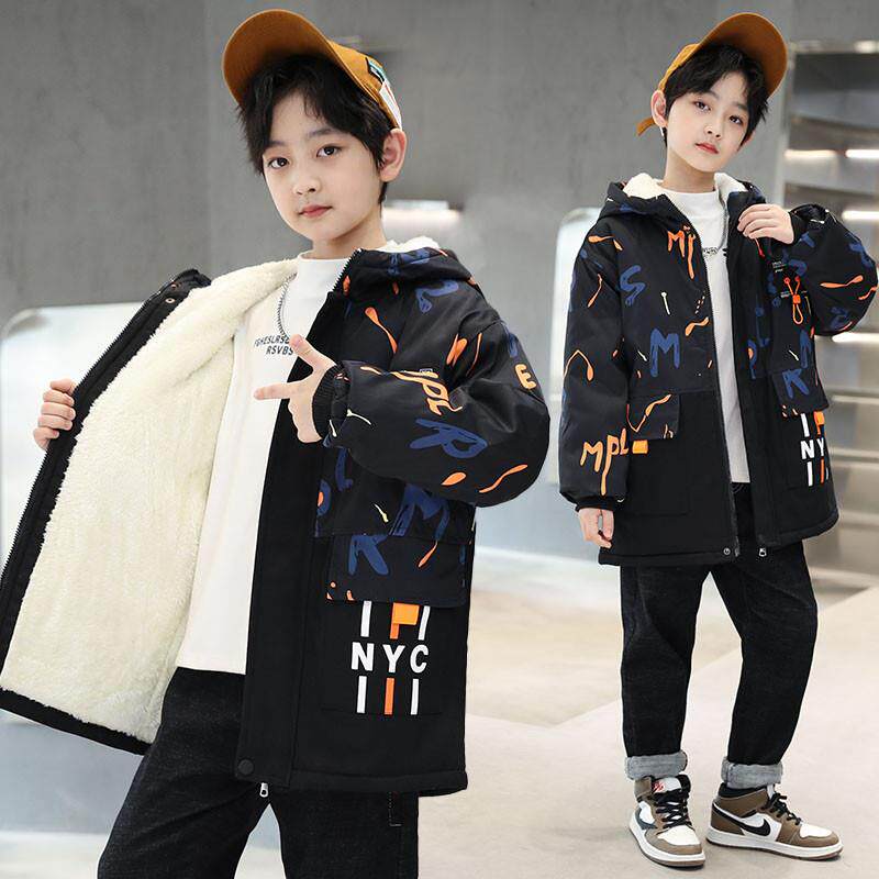 男童加绒外套秋冬款2025新款冬季加厚派克服中大童洋气儿童装棉衣