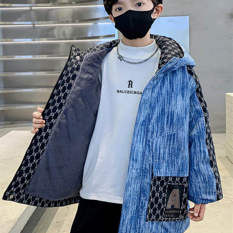 男童外套秋冬款2025新款加绒加厚派克服中大洋气儿童棉衣冬季棉袄