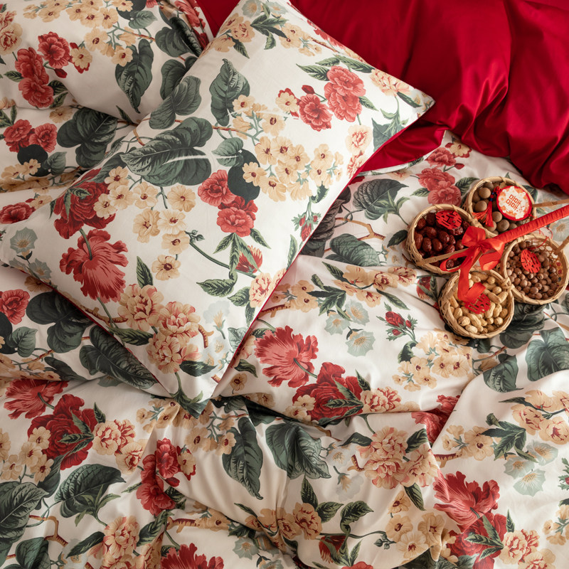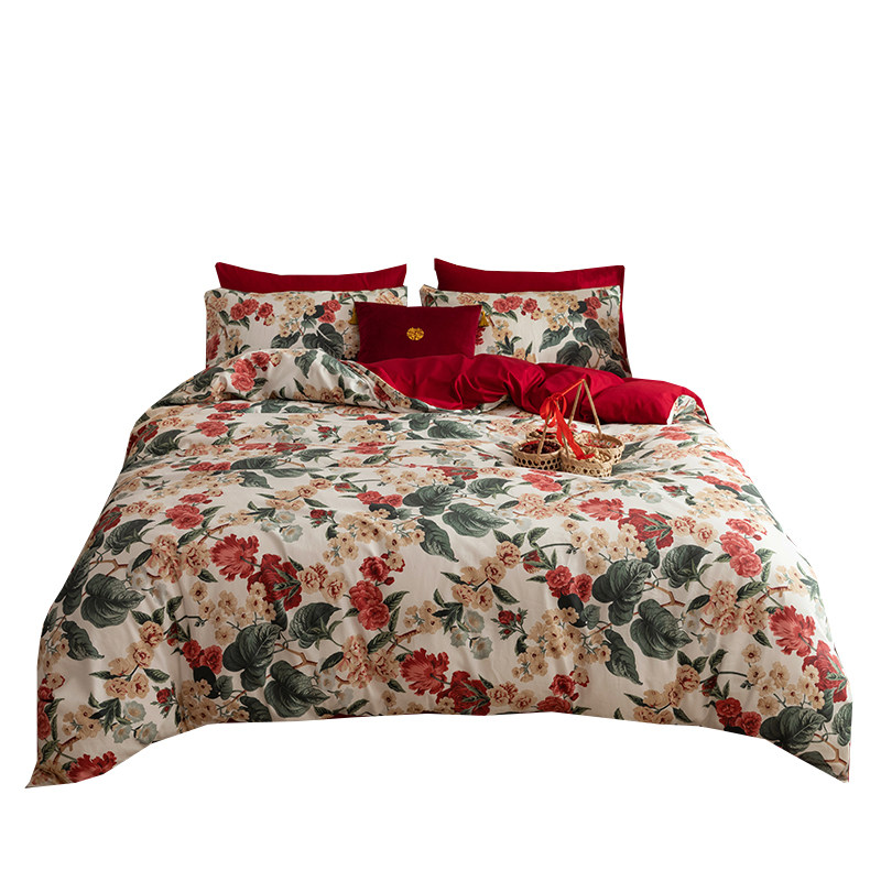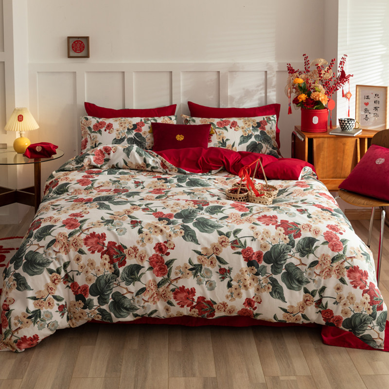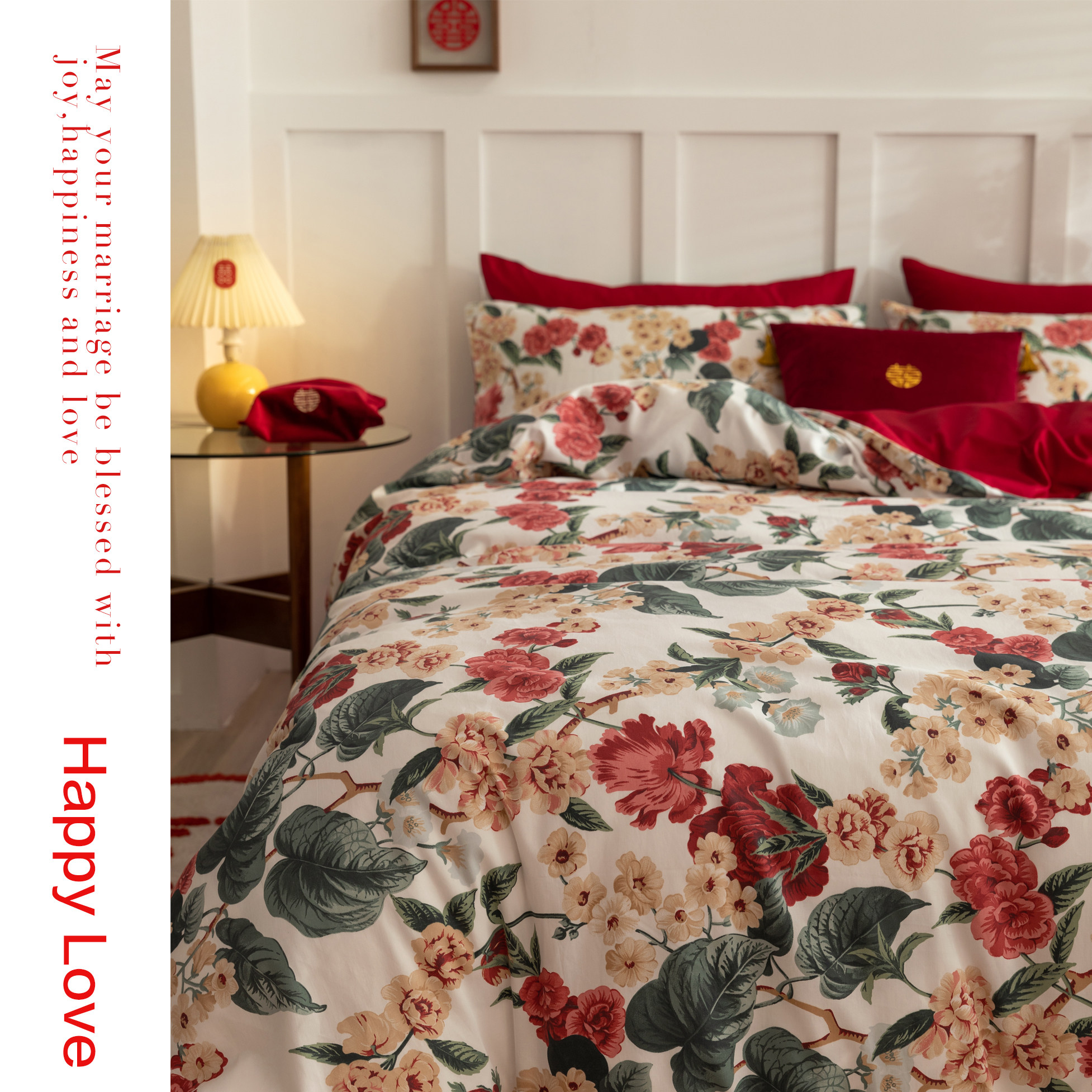 印花结婚四件套红色日常可用新婚庆床上用品全棉喜被婚礼高级感