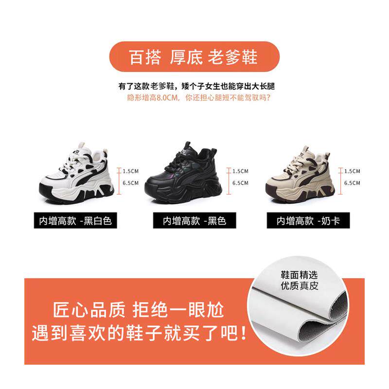 内增高老爹鞋女2025夏季新款真皮网面轻便软底超轻厚底透气运动鞋