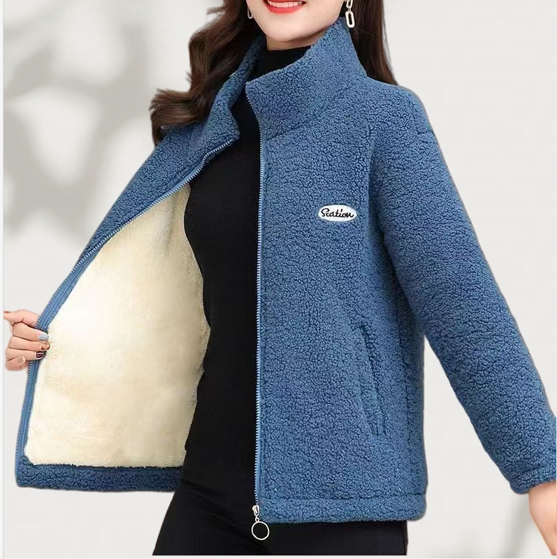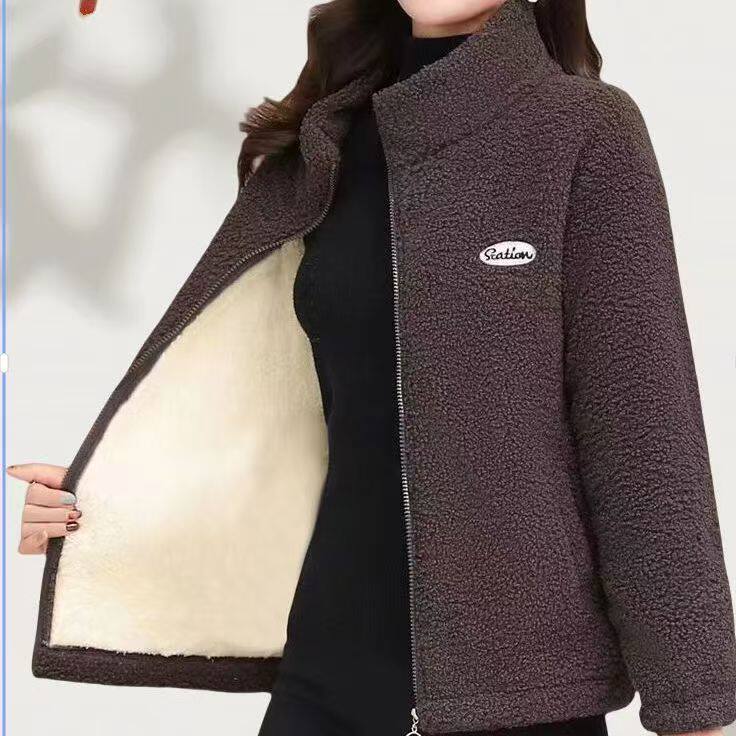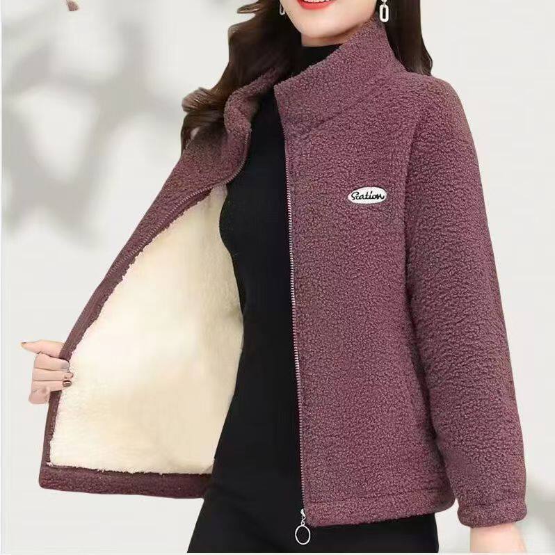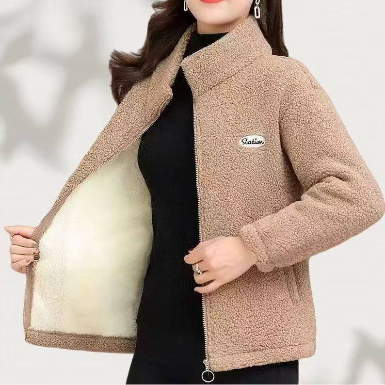 妈妈秋冬装羊羔毛外套新款中老年棉衣加绒加厚颗粒绒衣女时尚外套