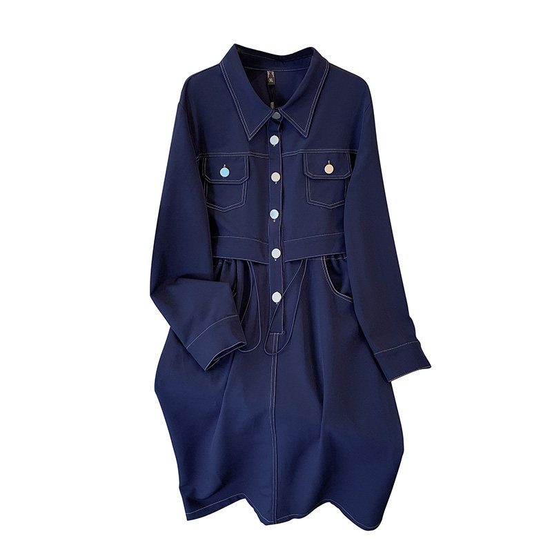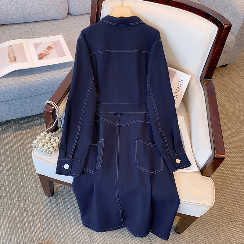 欧货胖mm大码女装春装新款遮肚藏肉裙子梨型身材显瘦假两件连衣裙