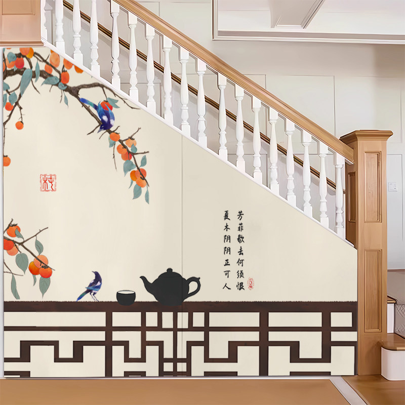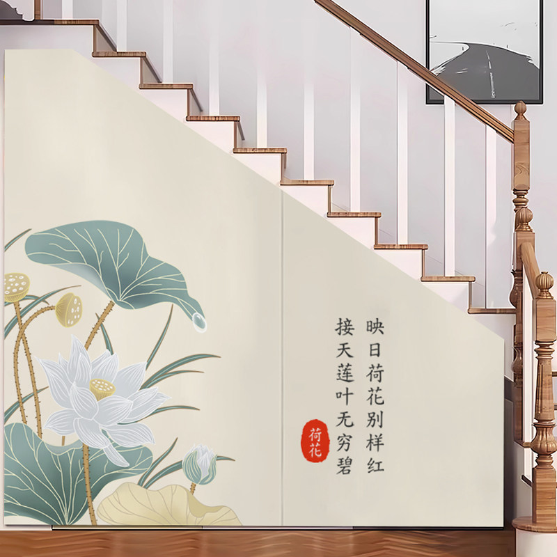 楼梯下遮挡帘定制侧面斜三角防尘免打孔装饰布帘储物杂物间遮丑帘