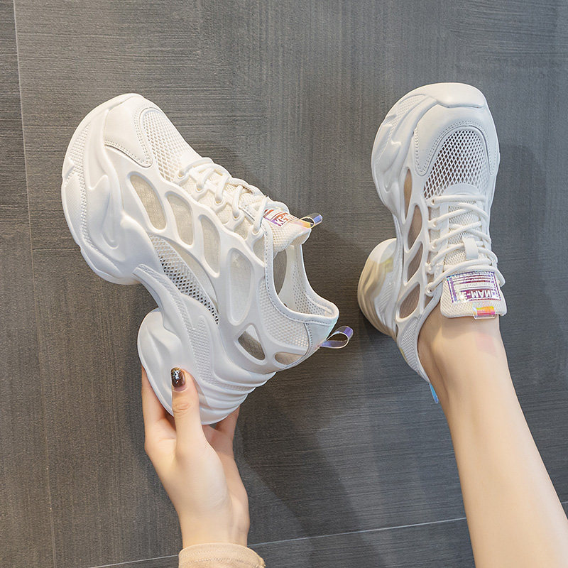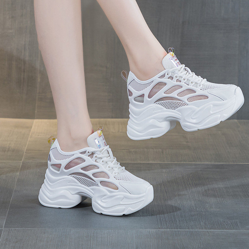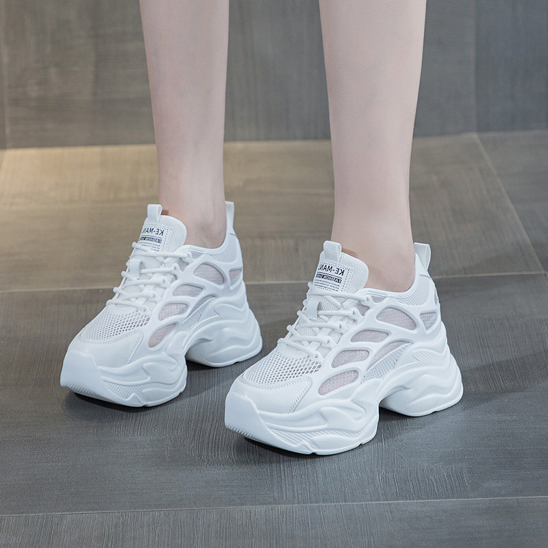 小个子内增高透气网面厚底老爹鞋女2025新款爆款夏天休闲小白鞋子