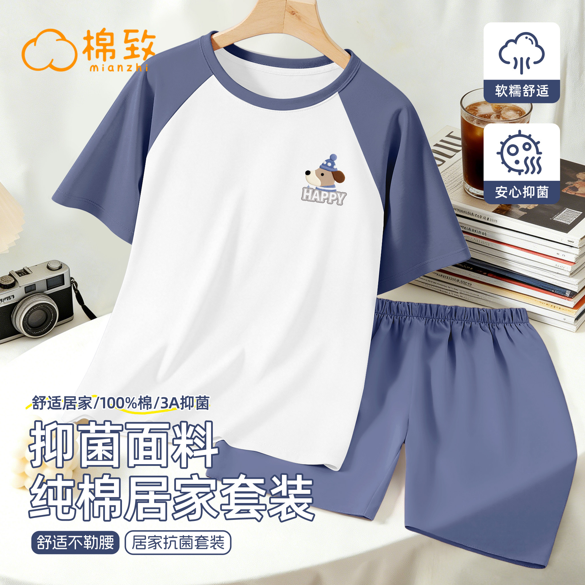棉致男童睡衣2026新款夏季纯棉a类男孩短袖短裤儿童家居服套装薄