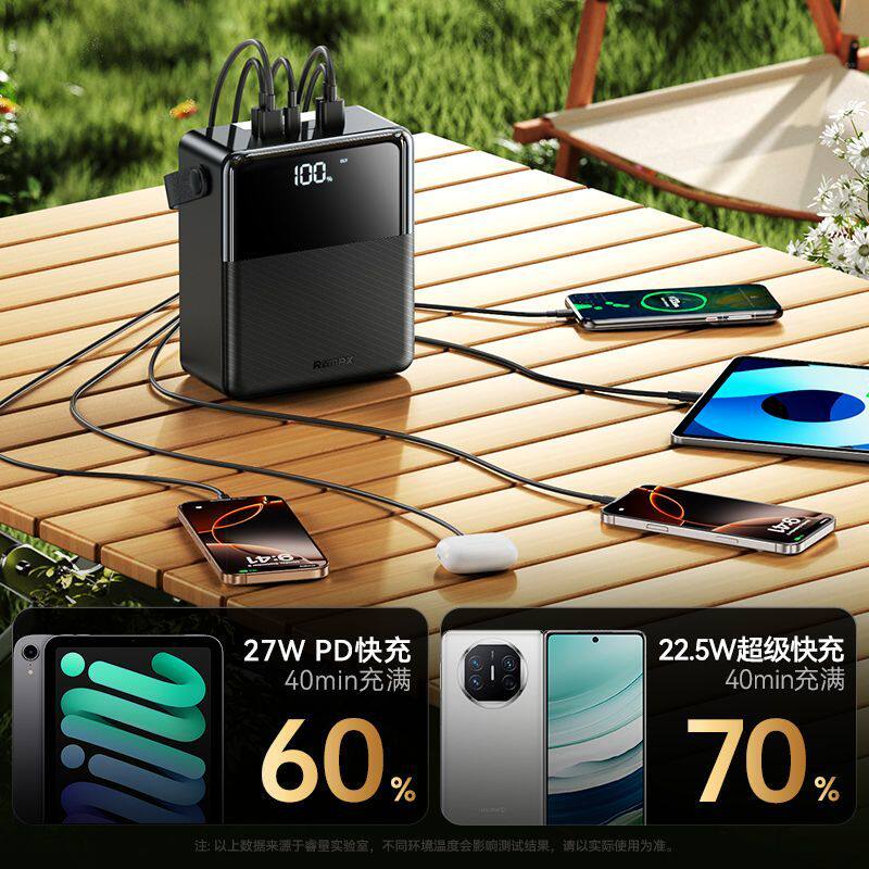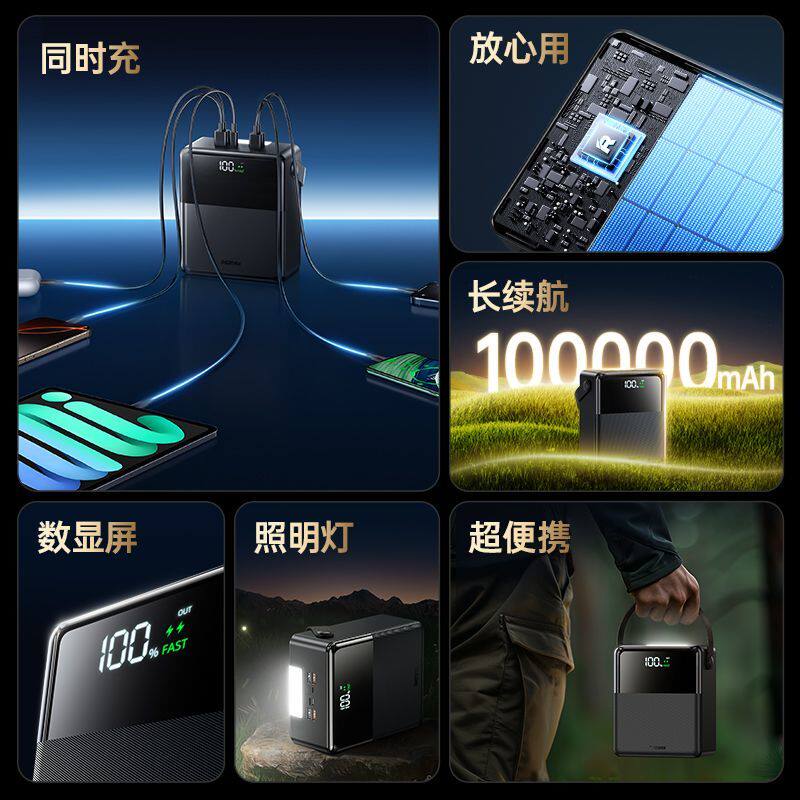 Remax睿量领航者10万毫安超大容量户外移动电源多输出快充电宝27W
