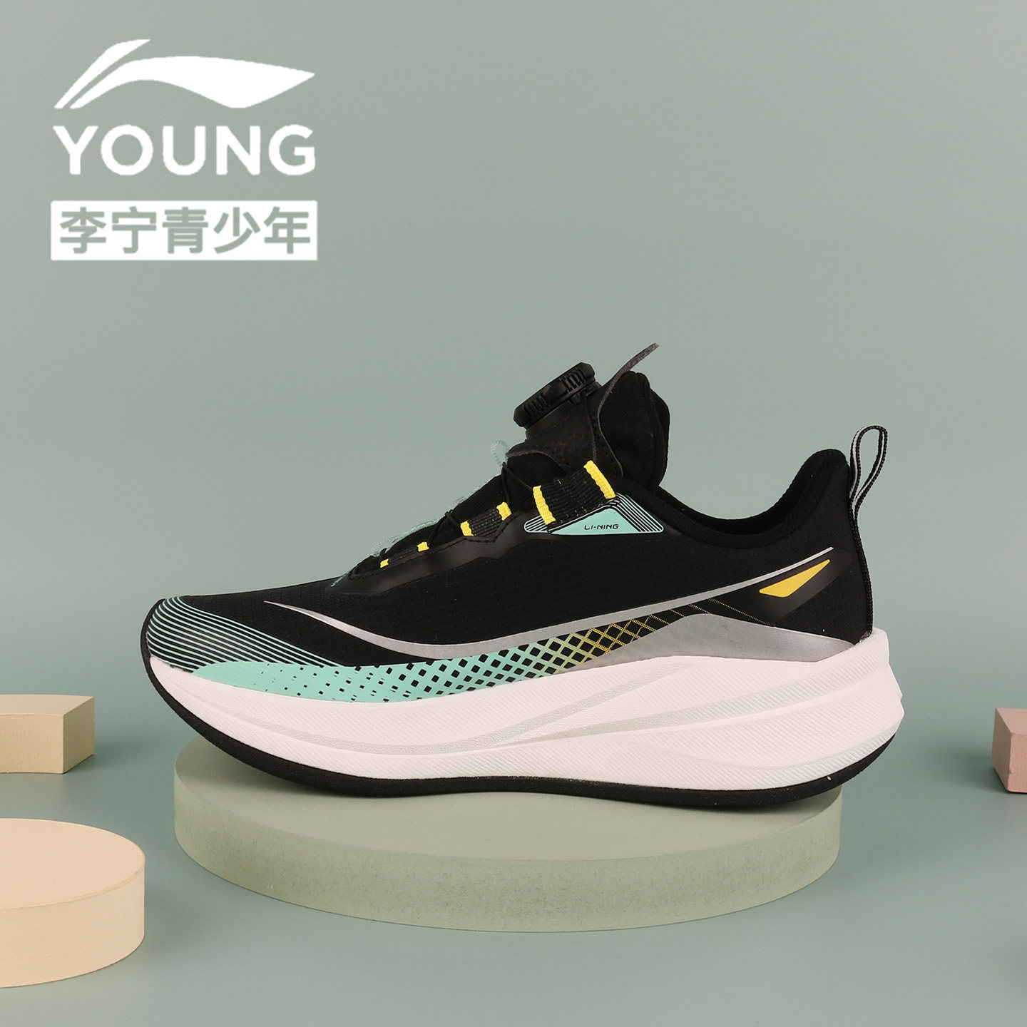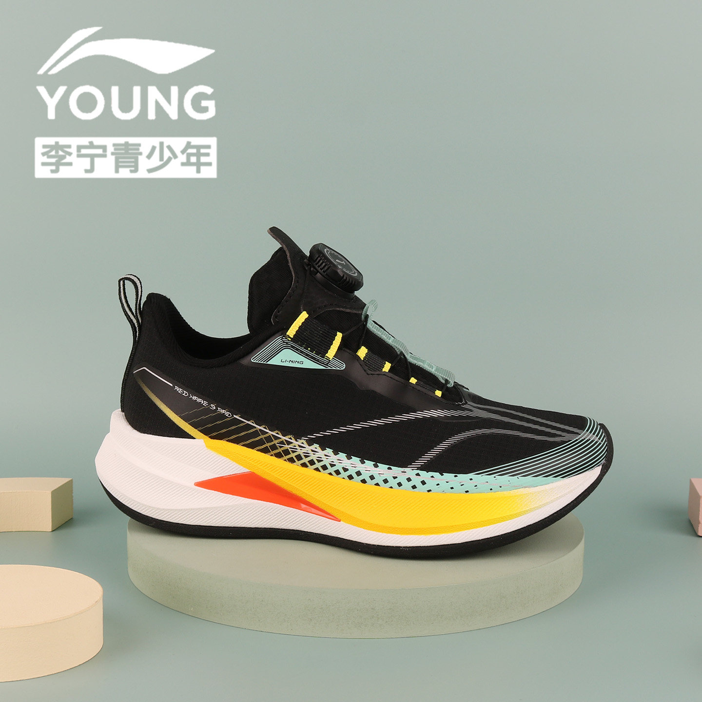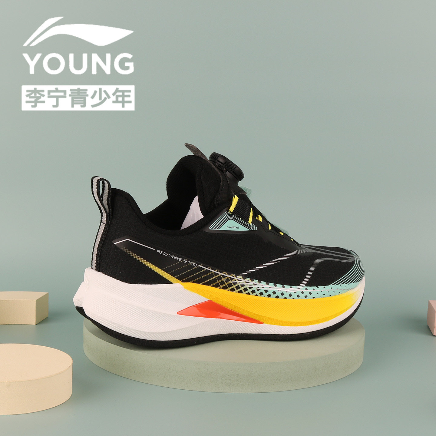 李宁男童鞋2026夏季赤兔9PRO跑步鞋青少年单网轻便减震纽扣运动鞋