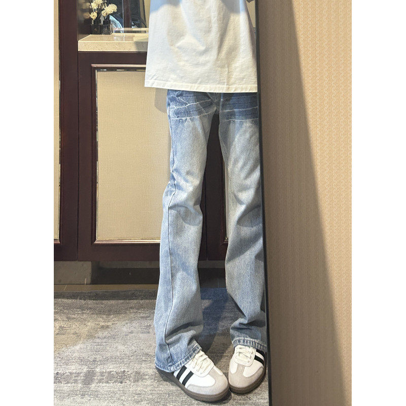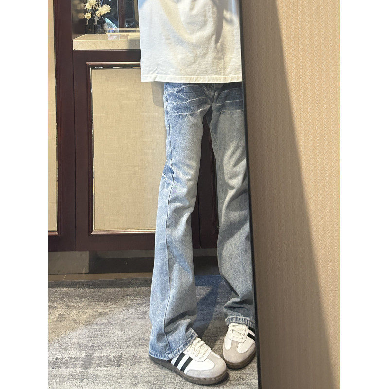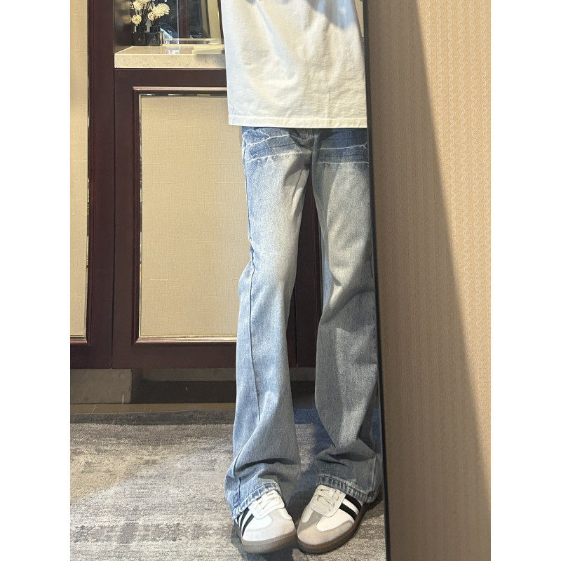 浅蓝色闪电纹牛仔裤女款直筒夏天巨好看的裤子显瘦cleanfit微喇裤