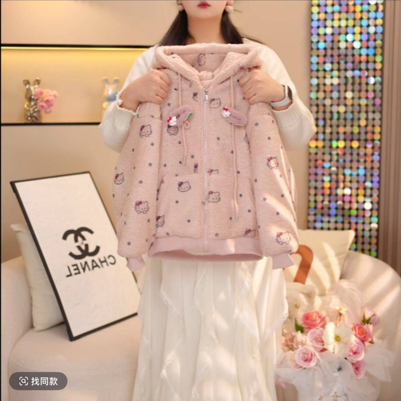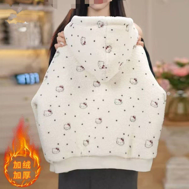 女童冬季羊羔绒连帽棉服加绒加厚外套冬装时尚洋气新款宽松上衣潮